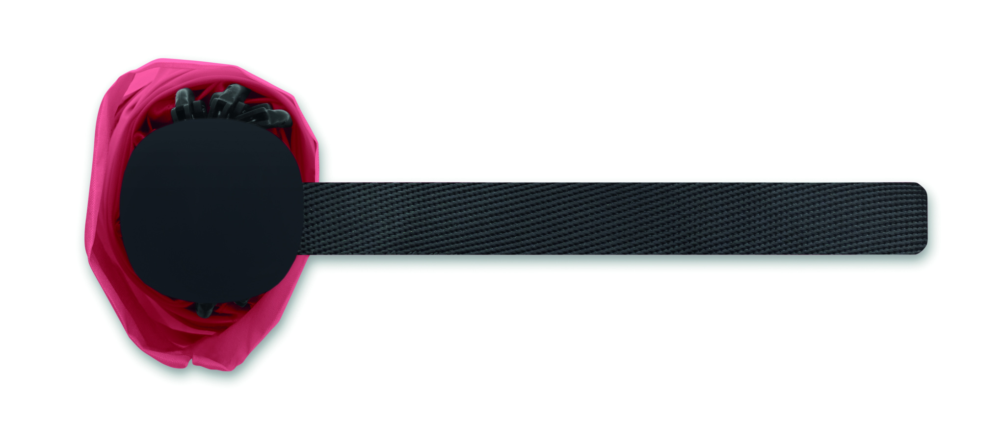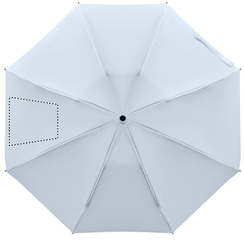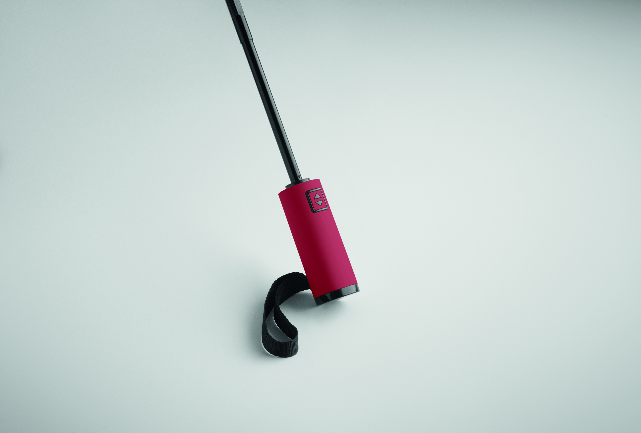 23-inch 3-fold reverse windproof umbrella made of 190T RPET pongee and matching pouch. Auto open and close, full black plating frame, fibreglass ribs, and a rubber-finished ABS handle.