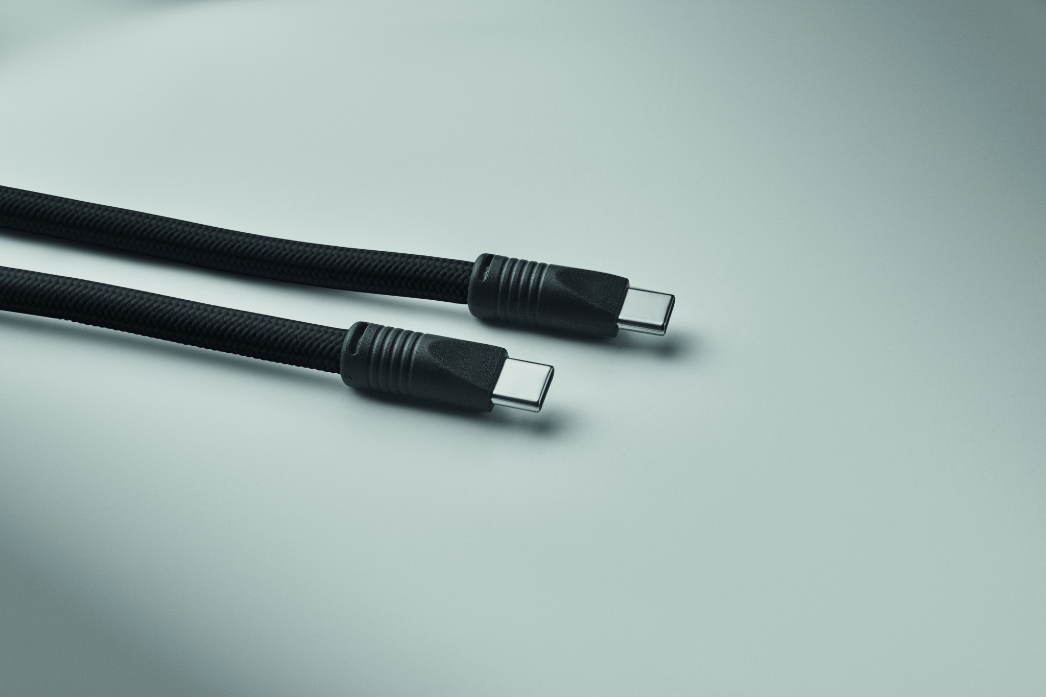 Cord lanyard with 60W charging and data transfer cable type-C to type-C in RPET with phone cord holder and key clip.