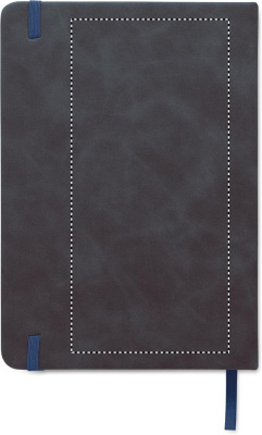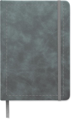 A5 notebook in 40% recycled post consumer smokey hard PU cover and 60% PU cover. Casebound. 160 lined pages, 70gsm recycled paper (80 sheets). Matching elastic closure strap and ribbon page marker.