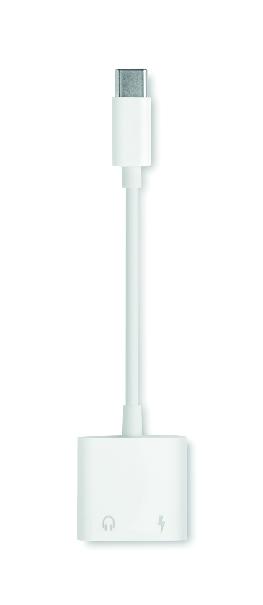 Multifunctional USB type-C and 3.5mm jack audio splitter in ABS.