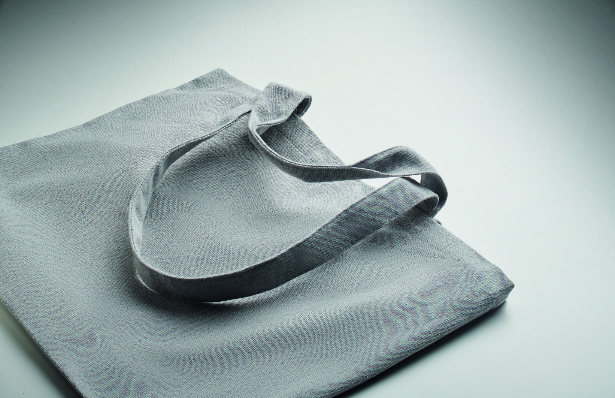 Shopping/beach bag in recycled fabrics (60% recycled cotton, 40% recycled polyester) with short and long handles. 320 gr/m².