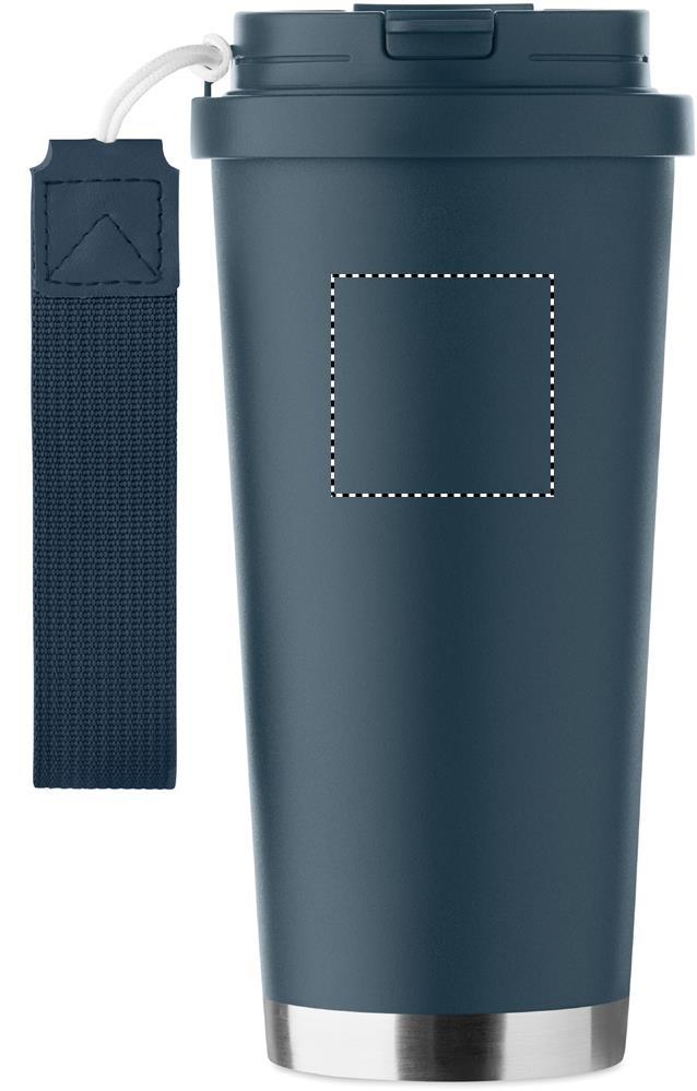 Double wall 90% recycled stainless steel (90% recycled stainless and 10% stainless steel) tumbler with PP lid (2-in-1 drinking sip and straw lid) and with RPET carry strap. Leak-free. Capacity: 500 ml.