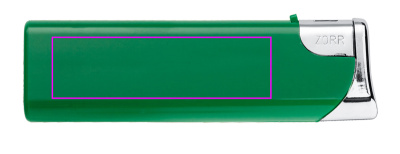 Заправляемая электронная зажигалка из пластика. Конечно, эта модель имеет обязательную блокировку от детей. Мы печатаем ваш логотип на одной стороне зажигалки.