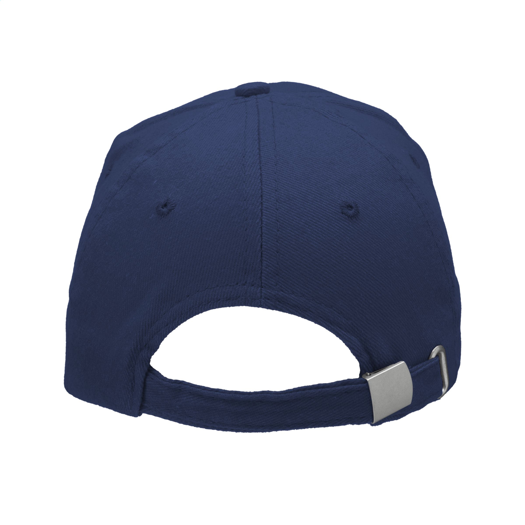 Прочная бейсболка из 100% расчесанного хлопка высокого качества, с предварительно сформированным козырьком и регулируемой металлической застежкой сзади.