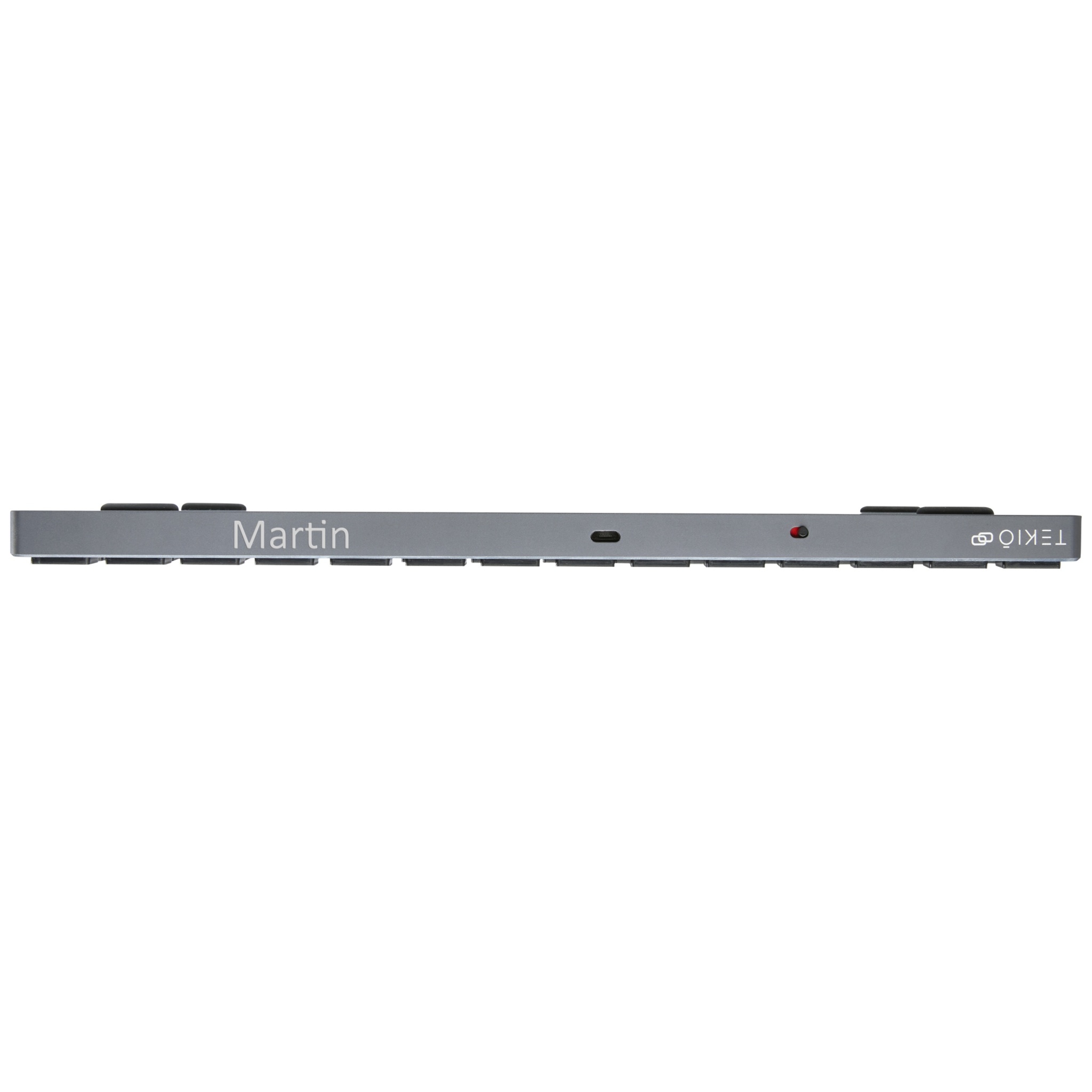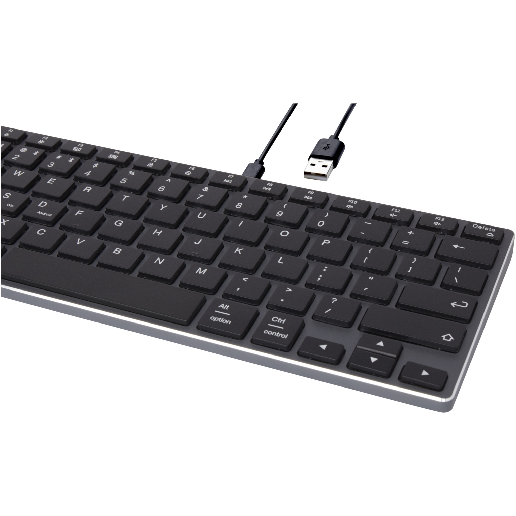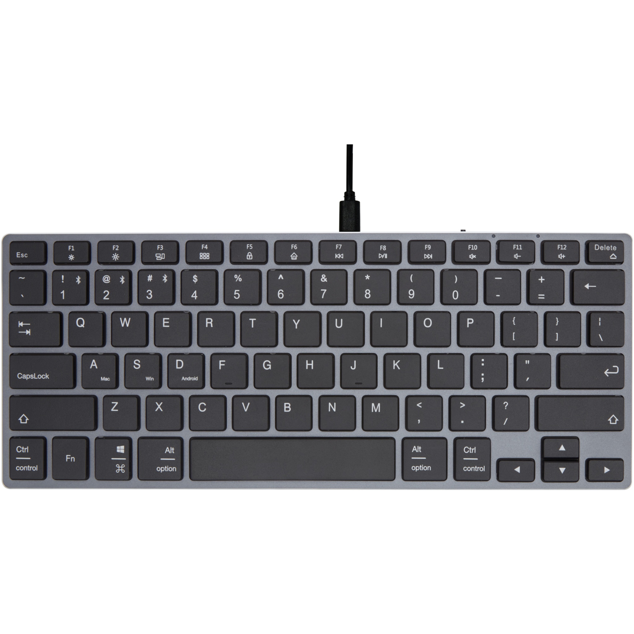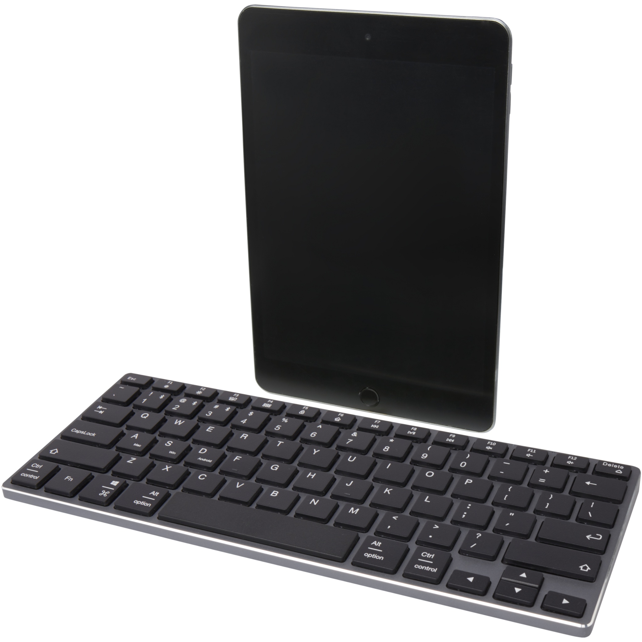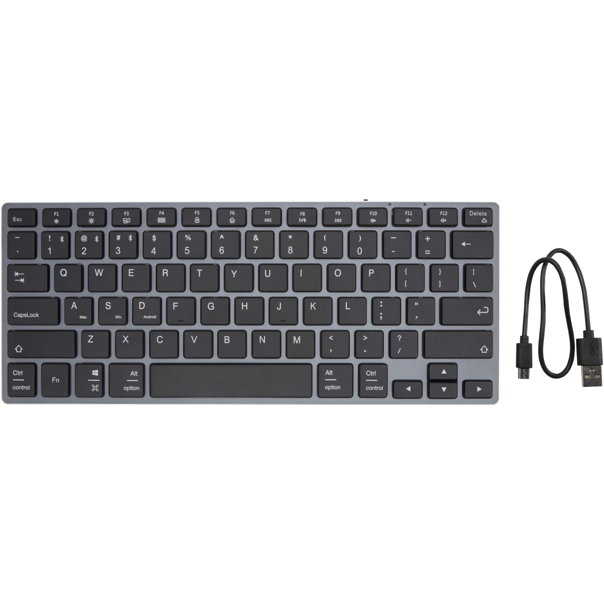 Легкая клавиатура (раскладка QWERTY, 78 клавиш) с прочным алюминиевым корпусом. Стильный аксессуар для работы из дома. Клавиатура оснащена Bluetooth® 4.0 для стабильного соединения и низкого энергопотребления и совместима с ПК/ноутбуком, планшетами, мобильными телефонами, смарт-телевизорами и другими устройствами с функцией Bluetooth®. Радиус действия составляет до 10 метров. Встроенная перезаряжаемая батарея емкостью 350 мАч обеспечивает время работы в режиме ожидания до 10 месяцев после однократной зарядки. Поставляется в коробке из крафт-бумаги премиум-класса и красочной наклейкой.