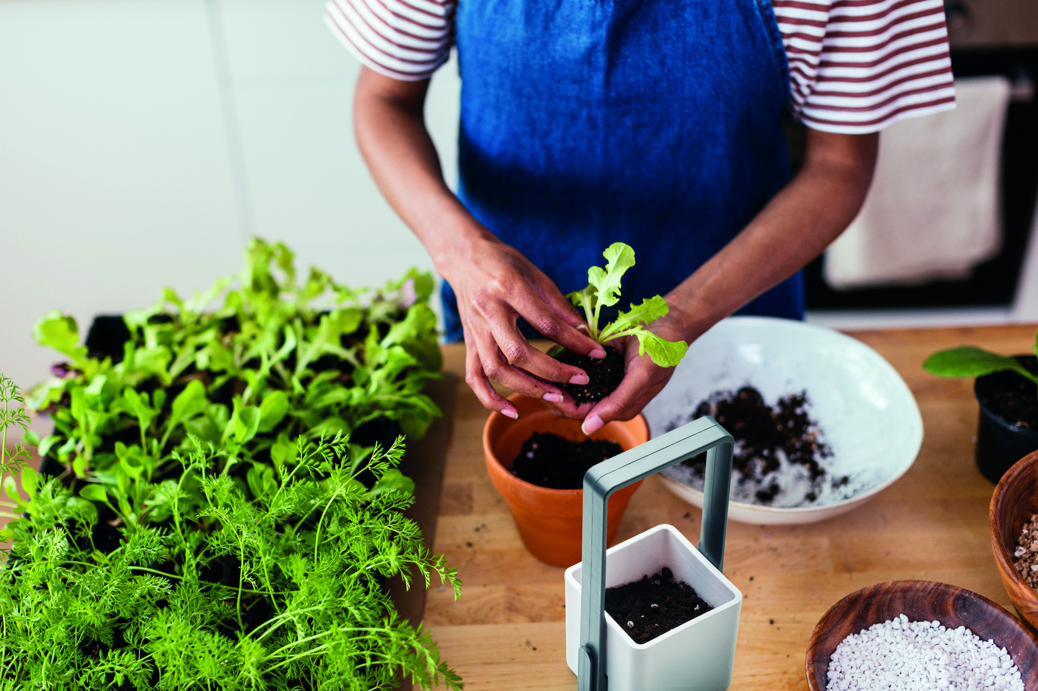 Indoor garden with 4 LED grow light in PP and ABS. Includes 1 pot, 1 filter/ reservoir and 1 USB cable, A/C adapter. Low voltage input: 5V. Not suitable for sale in the UK.