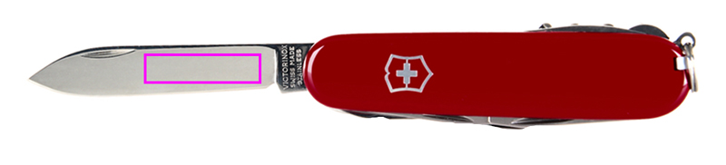 особенности: 1. большое лезвие 2. пилочка для ногтей: 3 - приспособление для чистки ногтей 4. штопор 5. консервный нож с: 6. - маленькой отверткой 7. открывалка для крышек с: 8. - отверткой 9. - инструментом для зачистки проводов 10. шампур-шило 11. кольцо для ключей 12. пинцет 13. зубочистка