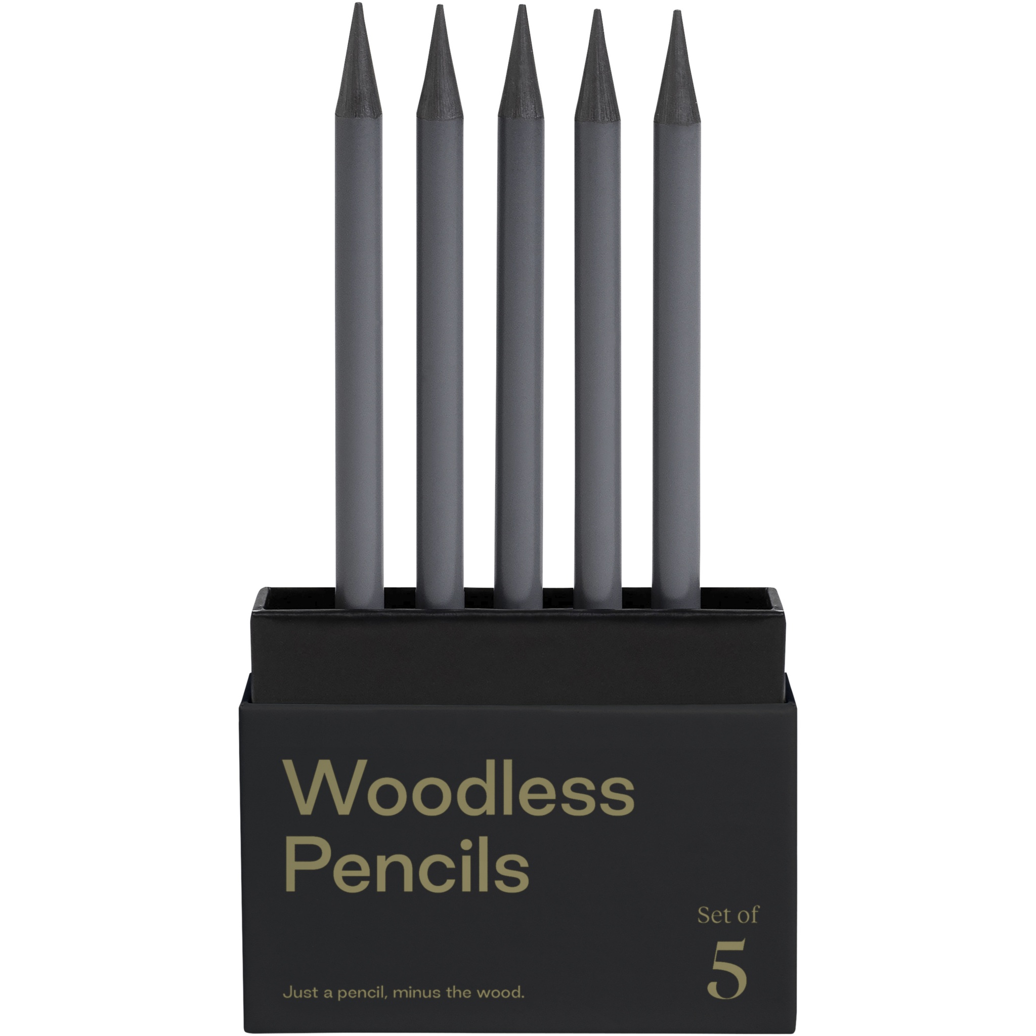 Набор из 5 графитовых карандашей, у которых в 5 раз больше графита в каждом карандаше. Корпус без содержания древесины можно заточить для получения четкой линии или сделать тупым для выразительных мазков или деликатного затенения. Конструкция без содержания древесины обеспечивает универсальность использования и отсутствие мусора, который появляется при традиционной заточке деревяного карандаша. Благодаря своей тяжести, эти карандаши, находясь в руке, дарят приятные тактильные ощущения во время письма, выполнения набросков, черчения или рисования.