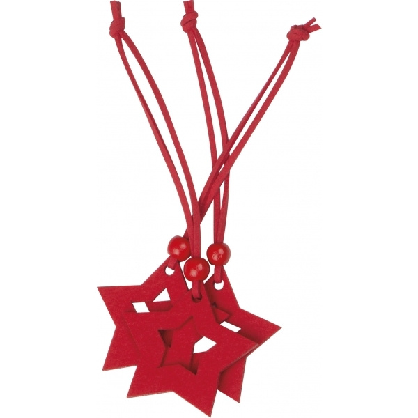 Набор из трех красных фетровых звезд со шнуром и деревянной бусиной, декоративный не только для рождественского сезона. Ваш логотип будет нанесен на индивидуальную упаковку с помощью этикетки.