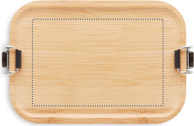 Ланч бокс из нержавеющей стали с боковыми защелками и бамбуковой крышкой. Емкость: 750 мл.