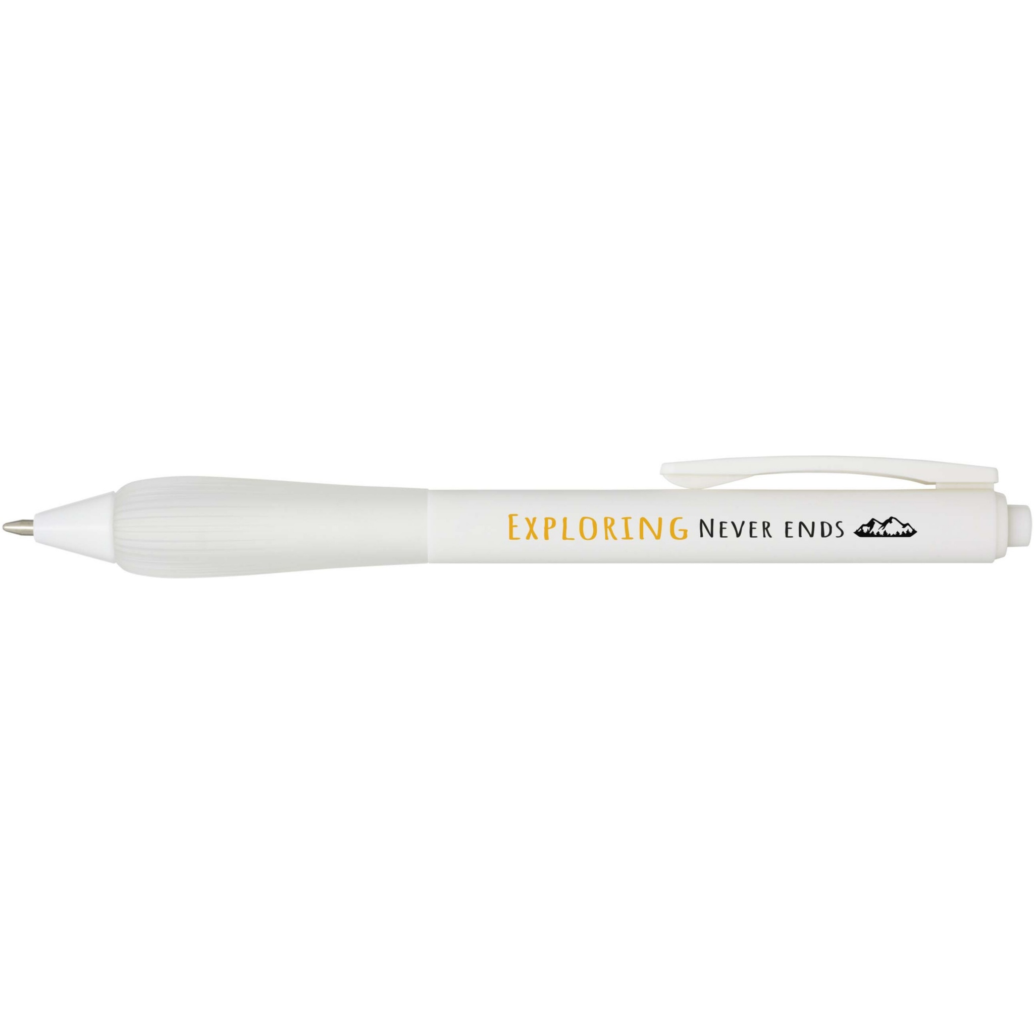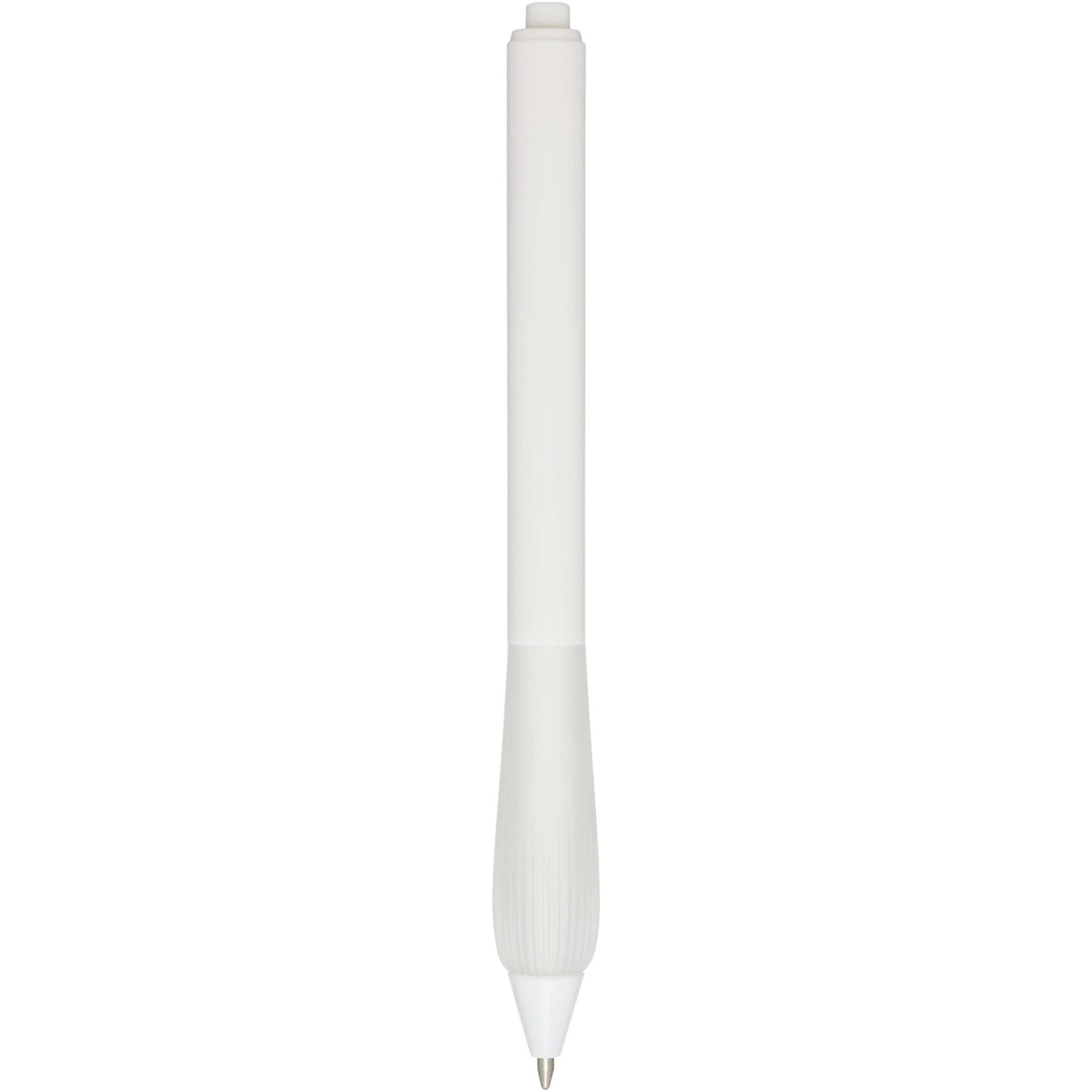 Шариковая ручка из переработанного пластика с прорезиненным корпусом и рукояткой из TPR. Цвет чернил: черный. Длина непрерывной линии: 1000 метров. Размер пера: 1,0 мм.