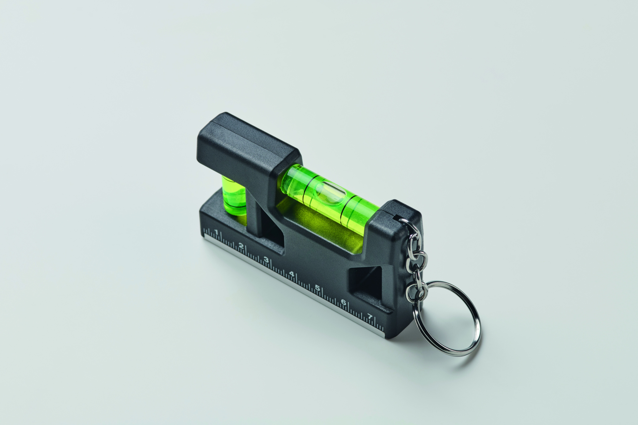 Magnetic double spirit level in ABS with keyring.