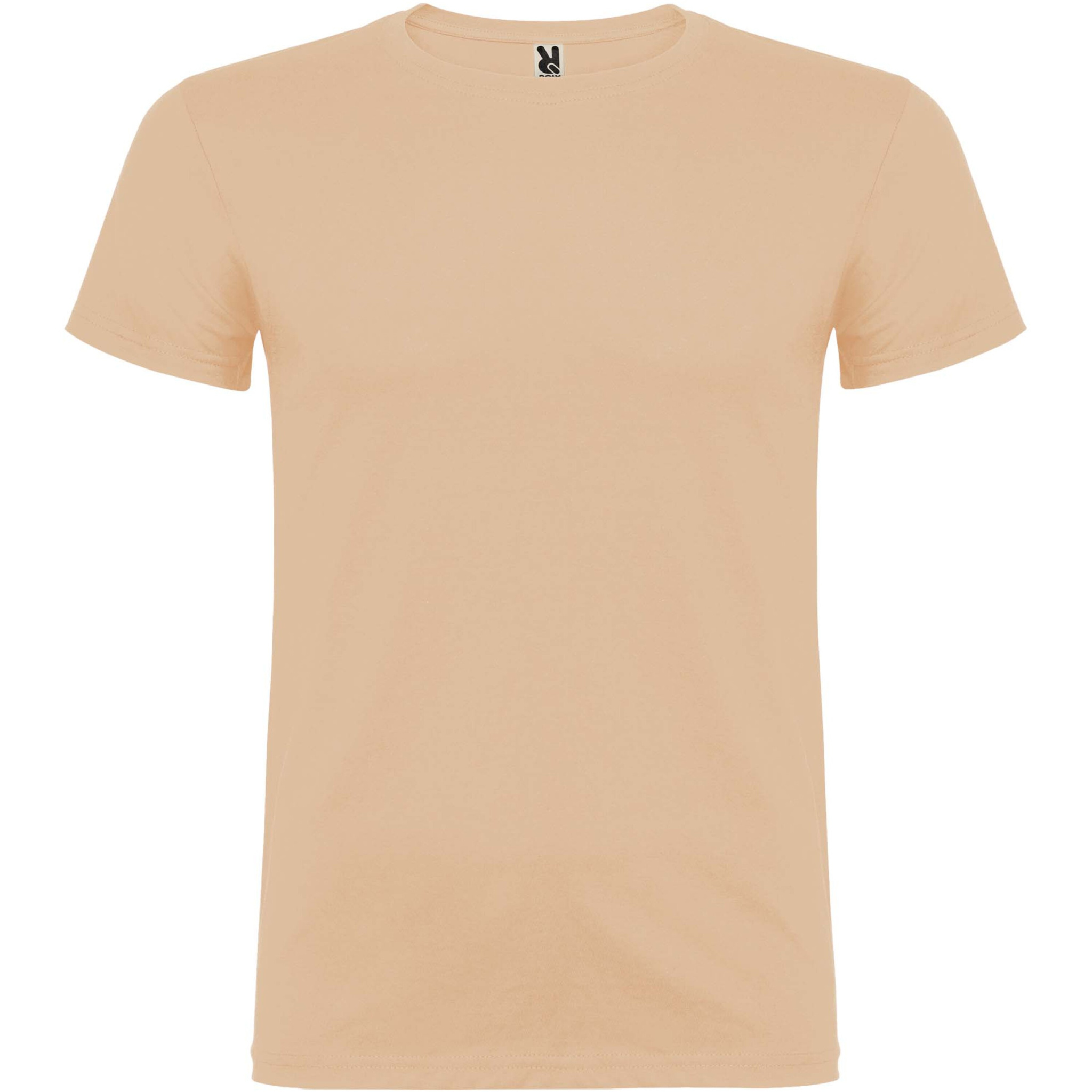 Футболка с короткими рукавами и двойной круглой горловиной с эластаном. Размеры для взрослых — из трубчатой ткани. Усиленные закрытые швы горловины. Съемная этикетка. Доступно в детских размерах.