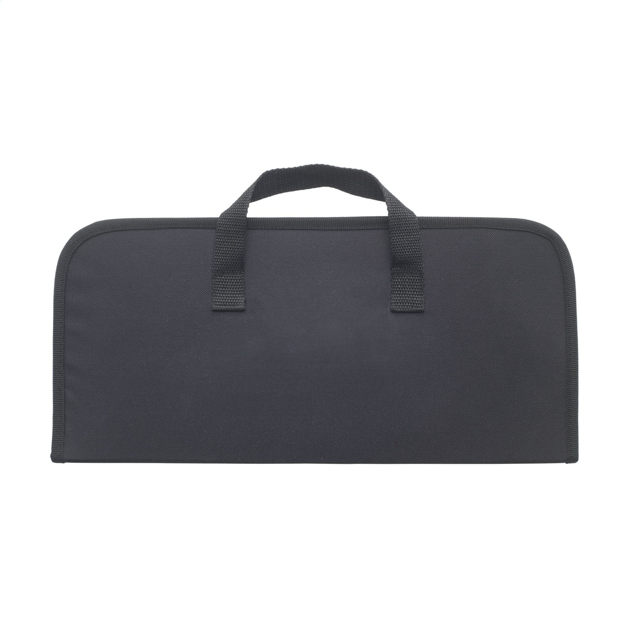 Набор для барбекю из 3 предметов, состоящий из одной лопатки и одного набора щипцов для барбекю, а также одной щетки из нержавеющей стали для чистки барбекю после использования. Все три аксессуара имеют ручки из каучукового дерева. Этот удобный набор поставляется в чехле из нейлона 600D.