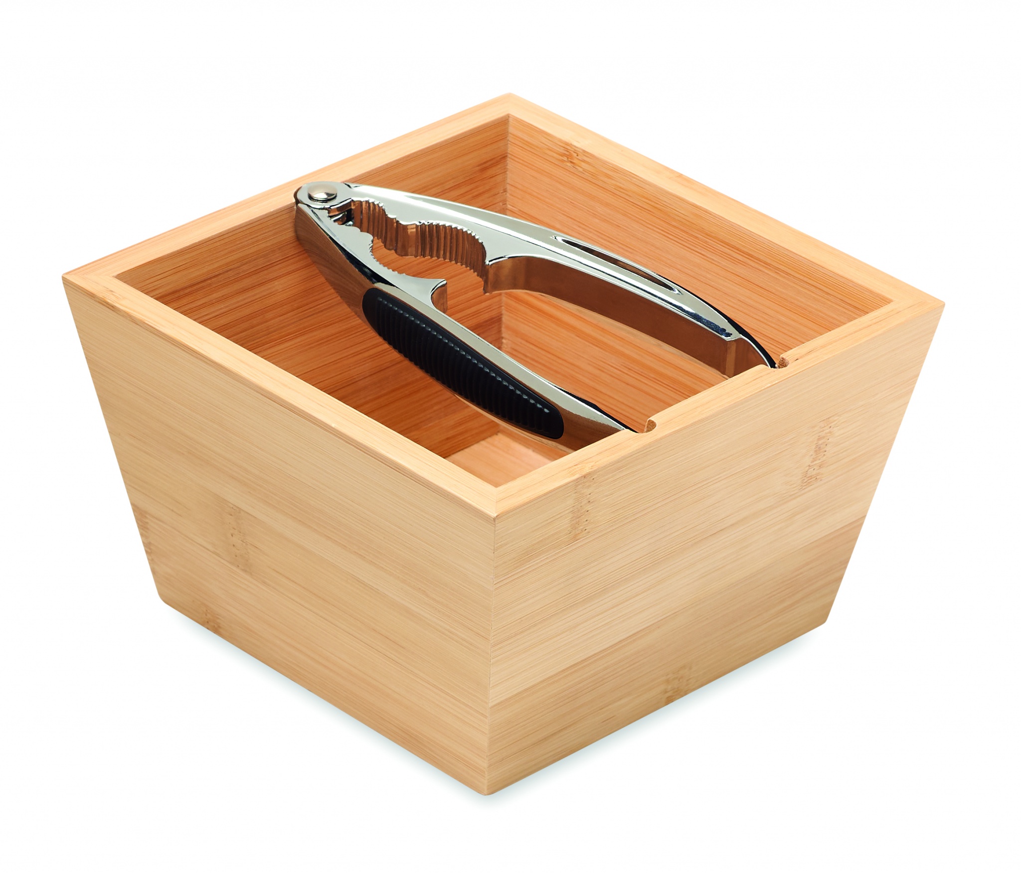 Набор для орехов с бамбуковой чашей и металлическим орехоколом из цинкового сплава и термопластичной резины