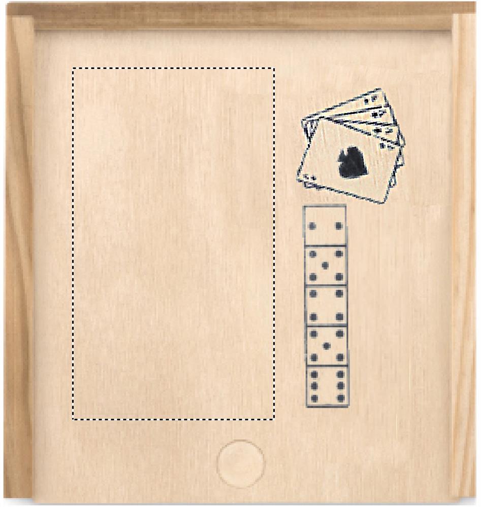 Карты игральные и кости в деревянной коробке. Кости деревянные (5 штук), карты бумажные (54 штуки).