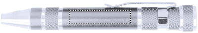 Набор с телескопическим фонариком на 3 LED лампочки и набором отверток в форме ручки. 4 батарейки в комплекте. Представлено в коробке.