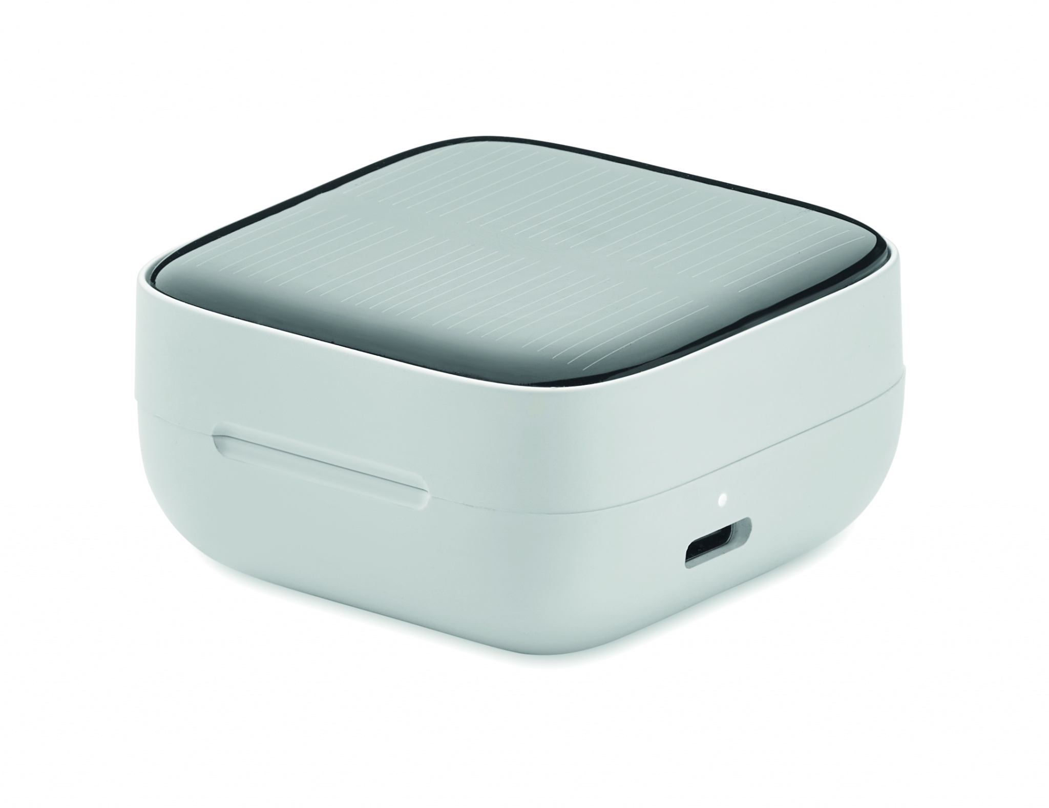 Беспроводные пластиковые наушники (TWS) 5.3 с микрофоном и аккумулятором емкостью 30 мАч. Время воспроизведения около 4 часов. Зарядка аккумулятора от солнечной энергии. Автоматическое сопряжение. В комплект входит кабель для зарядки Type C и зарядная станция емкостью 200 мАч.
