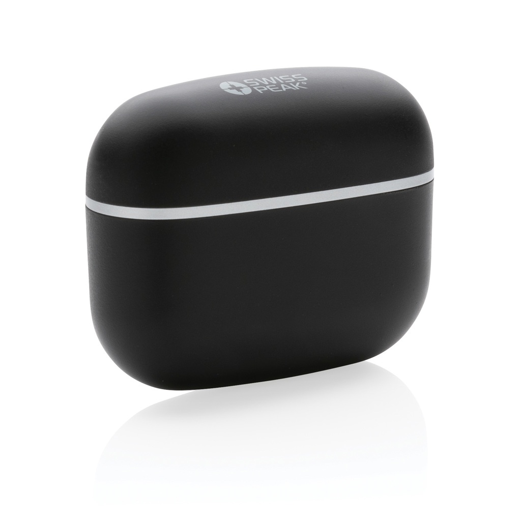 Лого трейд бизнес-подарки фото: Наушники-вкладыши Swiss Peak TWS 2.0 из переработанного пластика RCS