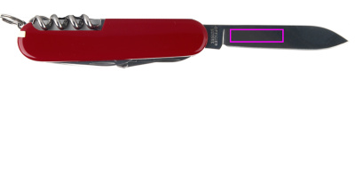 Характеристики: 1. большое лезвие 2. маленькое лезвие 3. штопор 4. консервный нож с: 5. - маленькой отверткой 6. открывалка для бутылок с: 7. - большой отверткой 8. - инструментом для зачистки проводов, швейной шило 9. дырокол 10. швейное ушко 11. кольцо для ключей 12. пинцет 13. зубочистка 14. ножницы 15. крючок 16. пила по дереву