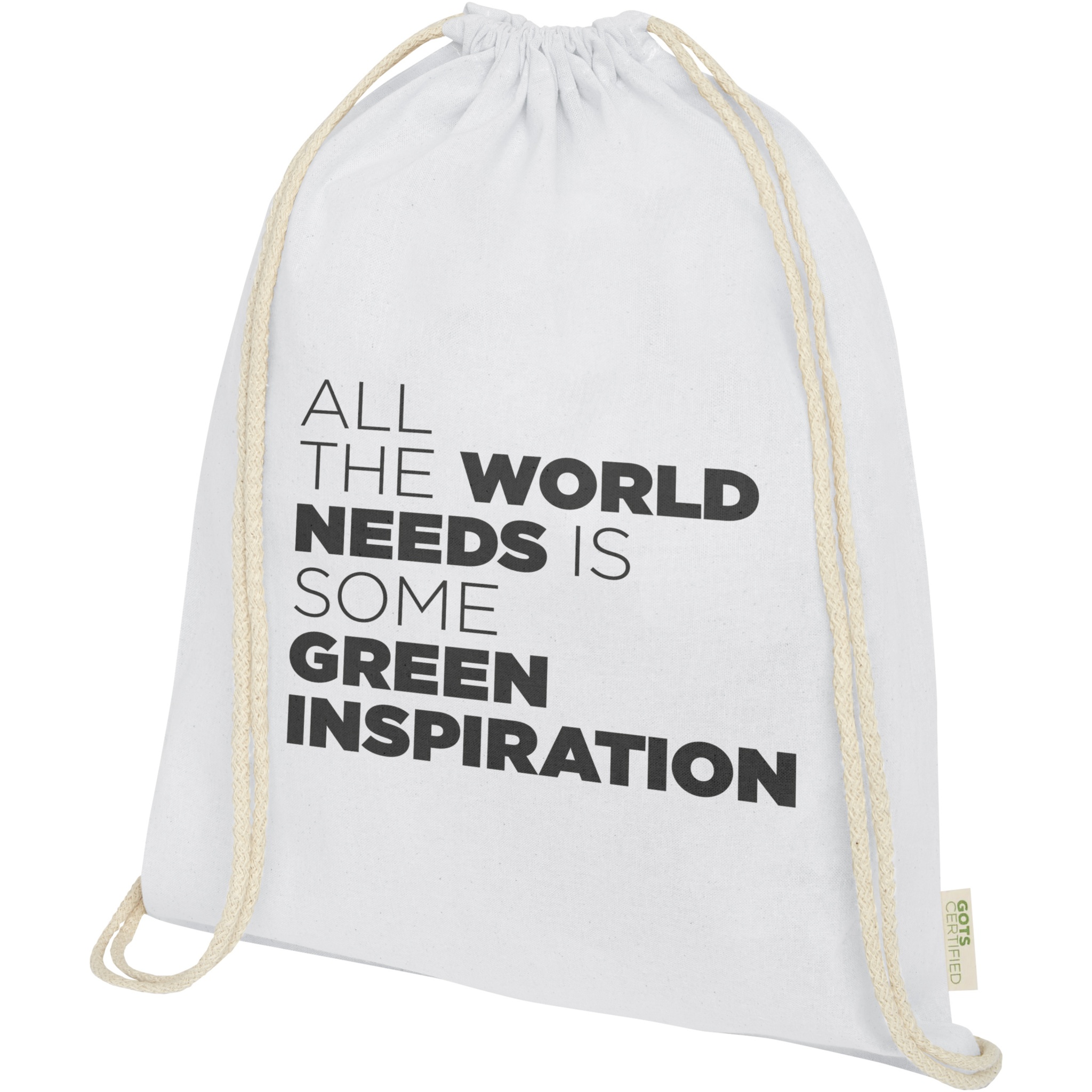 Orissa 100 g/m² organic cotton drawstring bag 5L, Белый