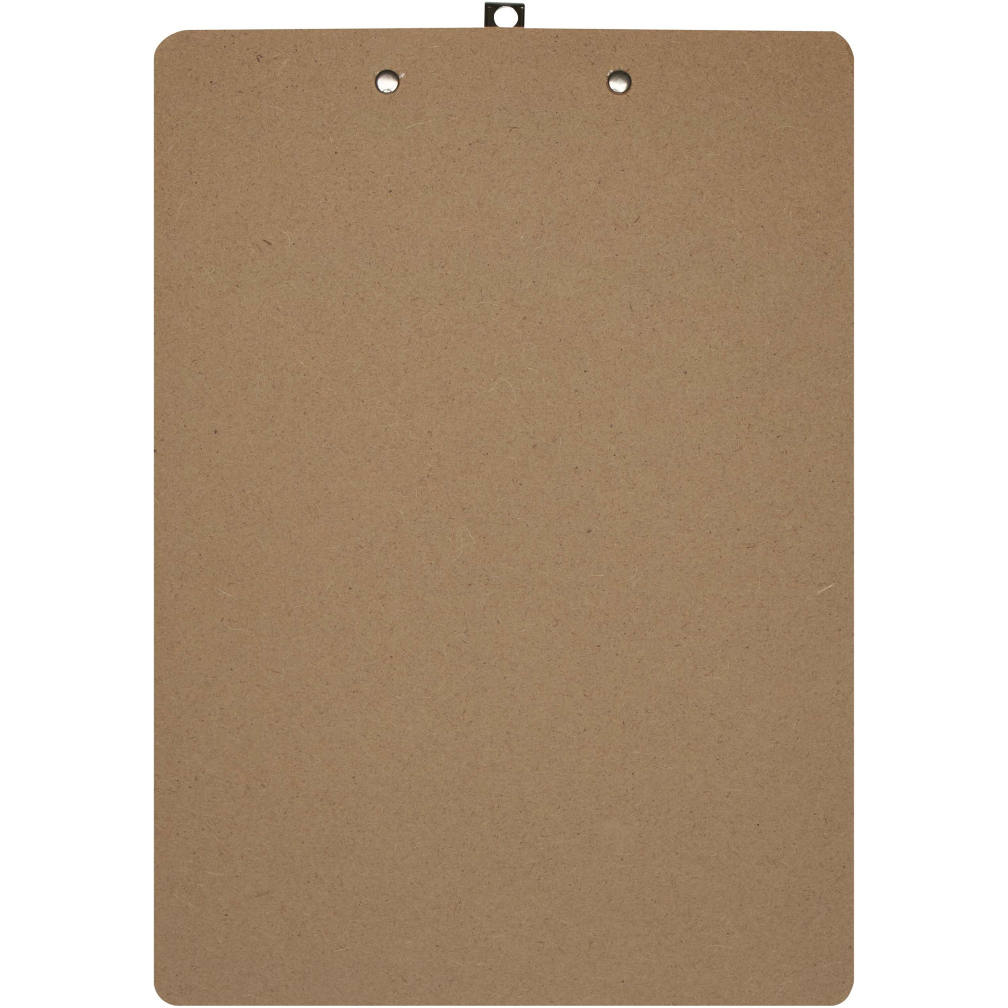 Удобный планшет из МДФ (древесноволокнистая плита средней плотности). Зажим, удерживающий лист бумаги, изготовлен из железа и пластика PP. Размер: 32 x 23 x 0,24 см.