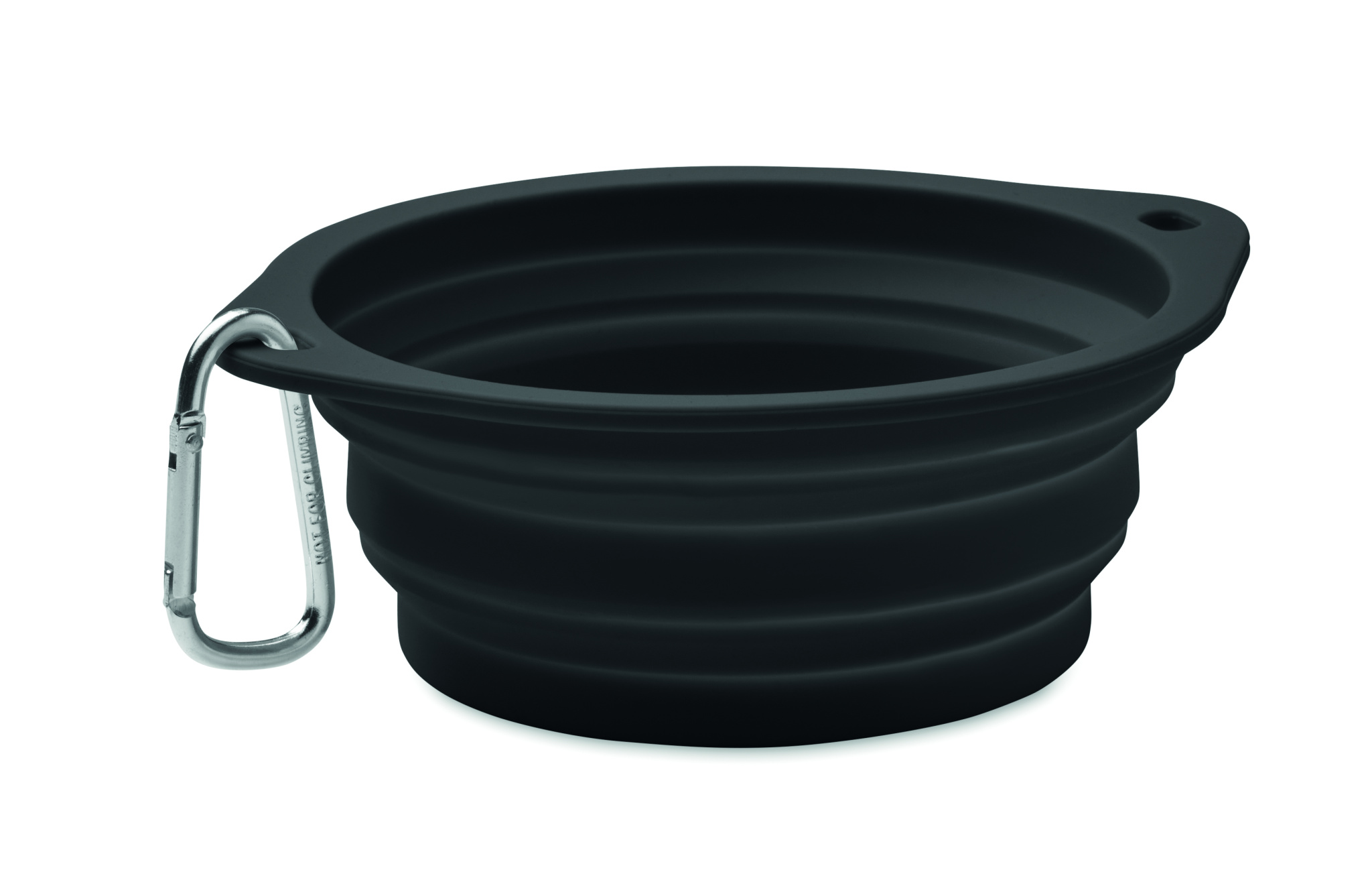 Collapsible portable silicone single drinking or food pet bowl with carabiner. Capacity: 350ml.