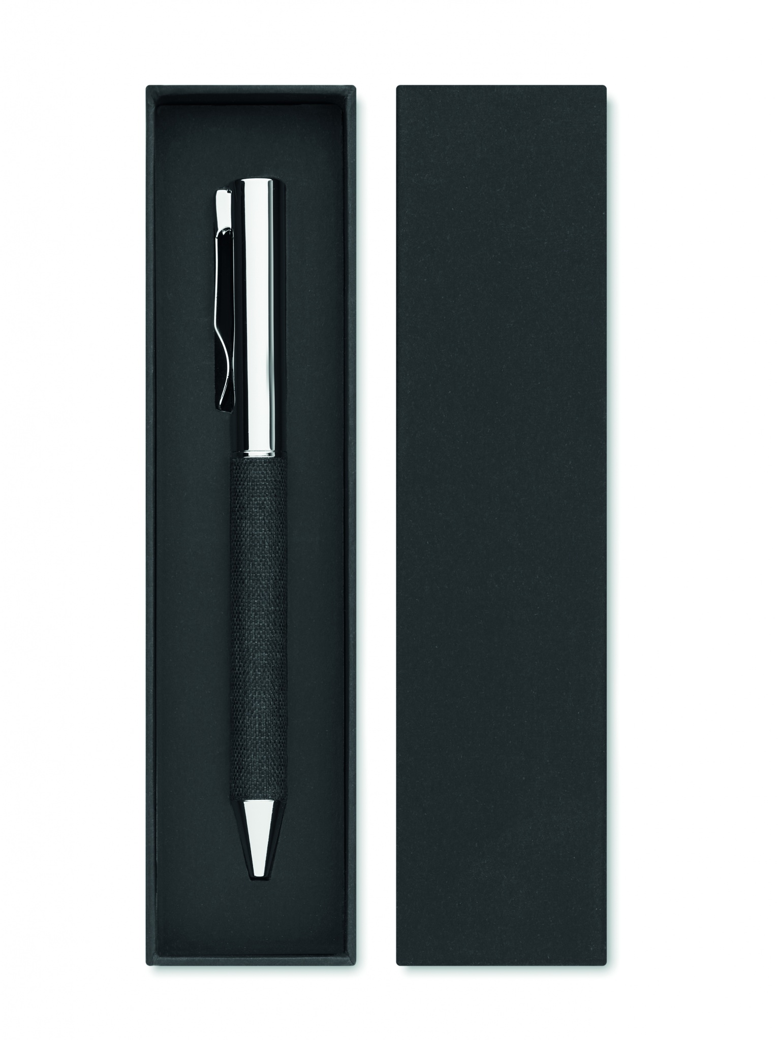 Металлическая шариковая ручка с крутящимся механизмом и вставками из полиэстера RPET в подарочной коробке. Синие чернила.