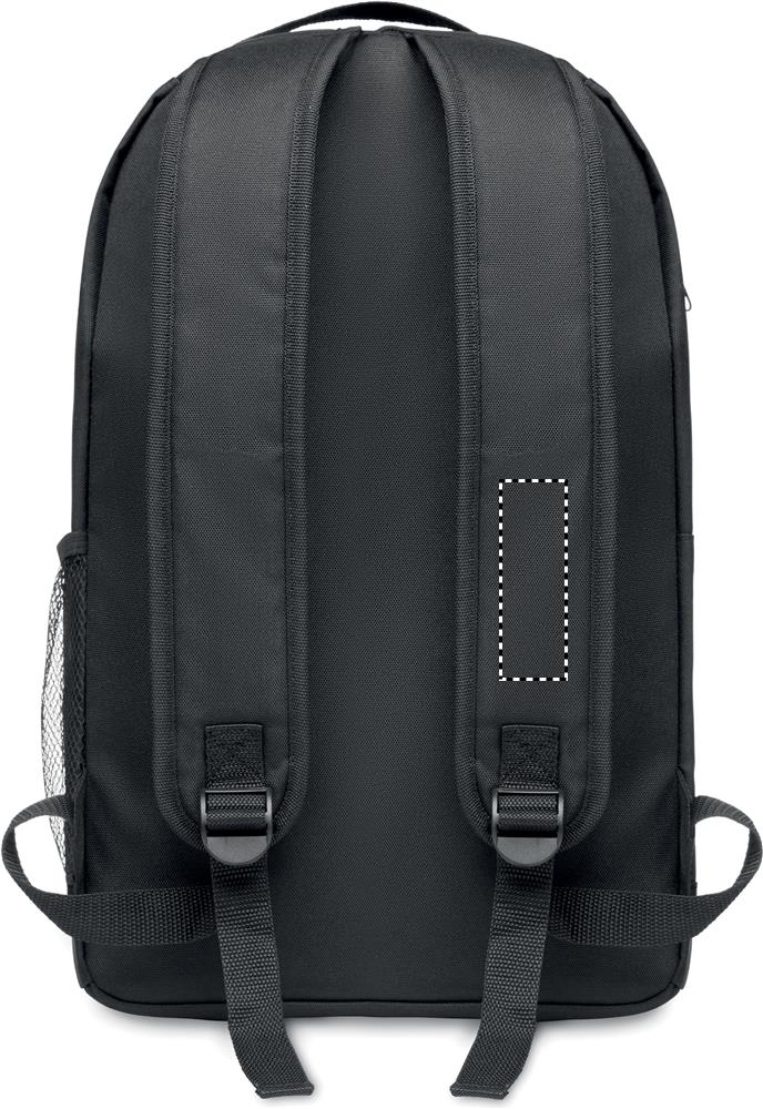 Рюкзак из 600D RPET со съемным фонариком спереди. Передний карман на липучке. Сетчатый карман на боку. Батарейка включена.
