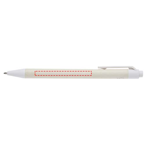 Шариковая ручка с кнопочным механизмом и корпусом из переработанных коробок из-под молока (до 70%). Кнопка, зажим и наконечник изготовлены из PLA-пластика. Картонные коробки из-под молока собираются, сортируются, перерабатываются и превращаются в бумагу, таким образом действительно превращая мусор во что-то полезное.