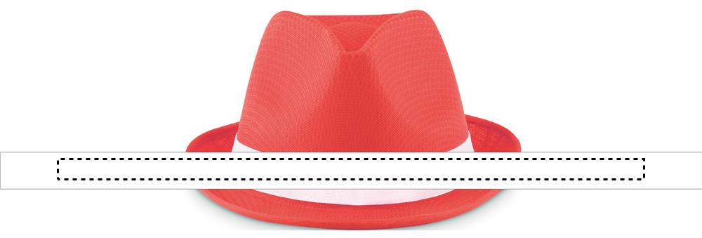 Шляпа из полиэстера, выглядит, как солома, декорирована ремешком. Для заказов без нанесения, лента комплектуется отдельно от изделия.