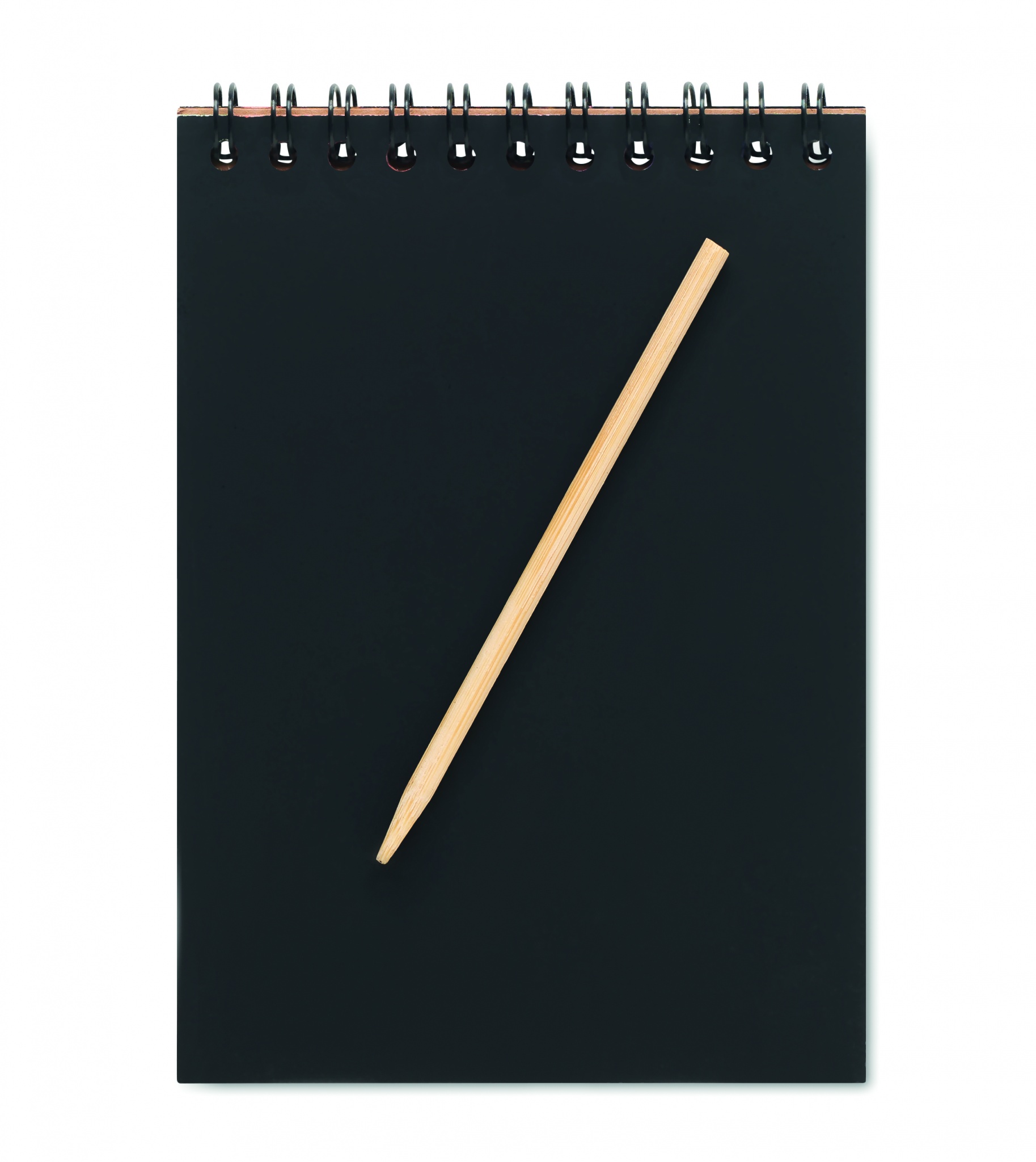 Скретч блокнот на пружине из крафт-бумаги, в комплекте 10 черных листов и деревянная ручка для рисования.