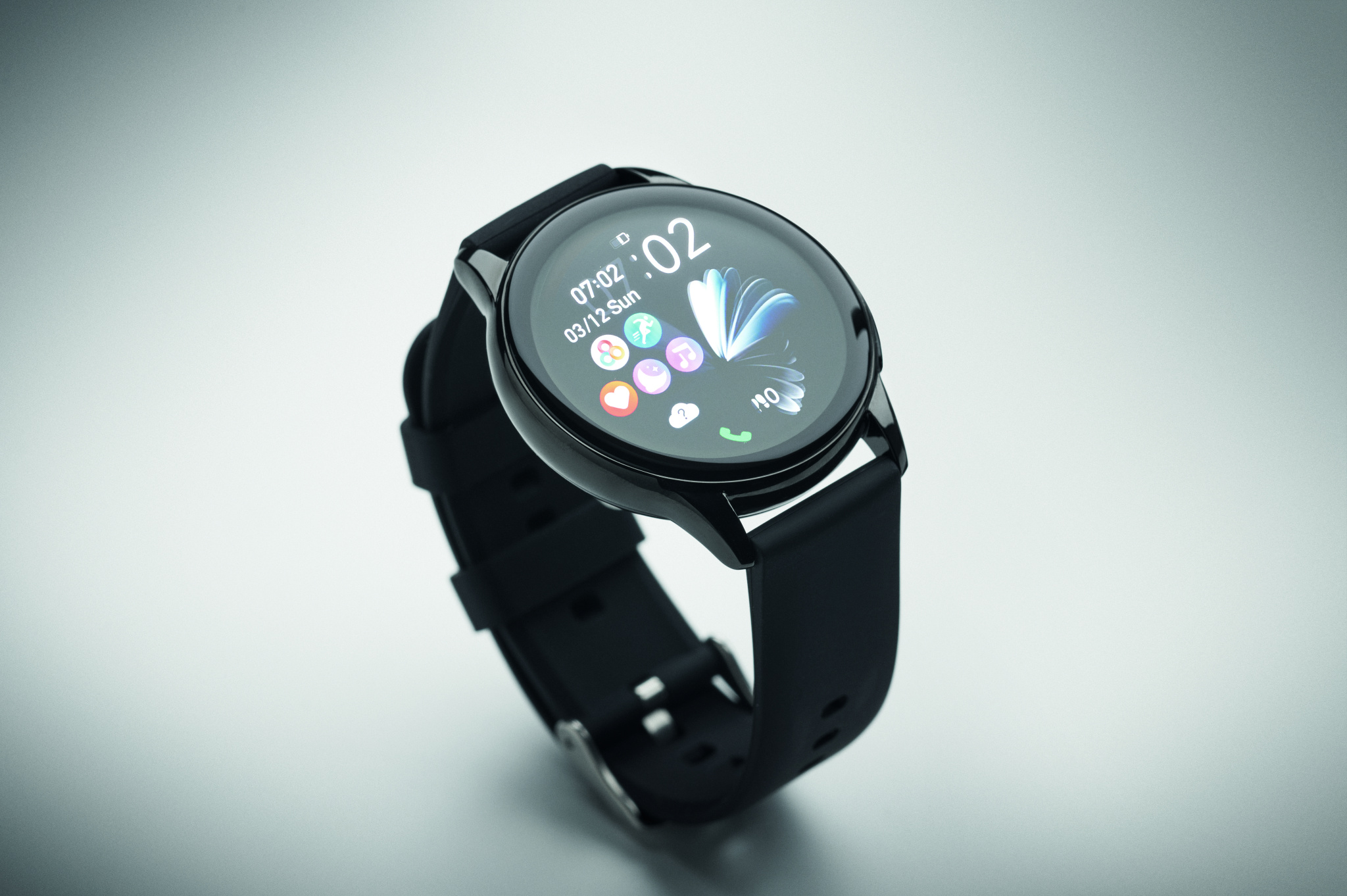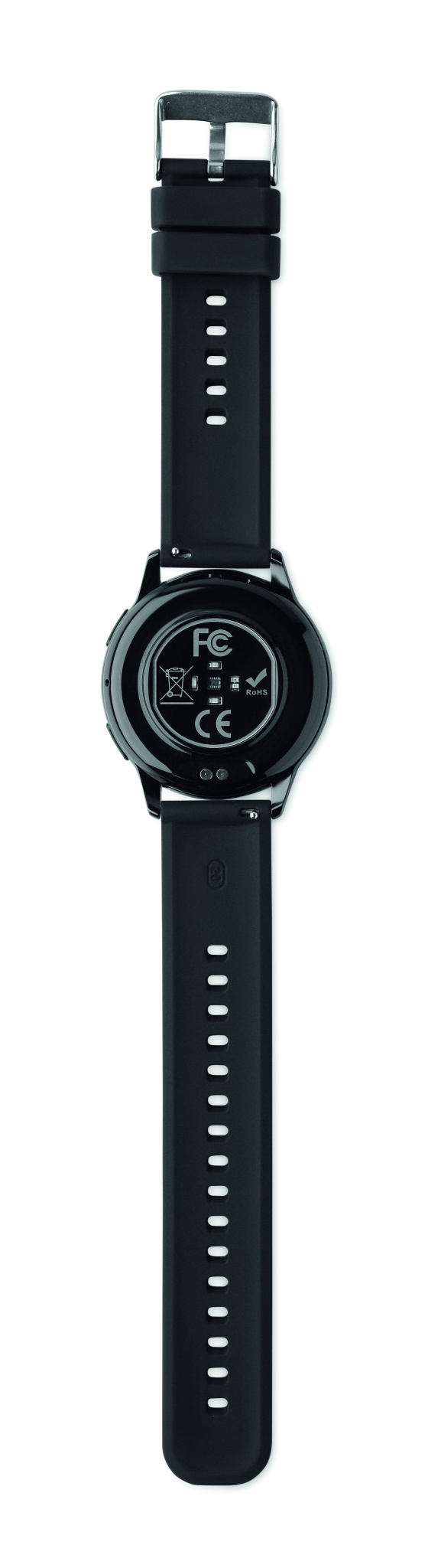 IP68 waterproof wireless smartwatch in zinc alloy with silicone strap. 1.32 inch AMOLED touch screen. Rechargeable Li-Pol 300 mAh battery. Requires a free app (FitCloudPro available in both iOS and Android).