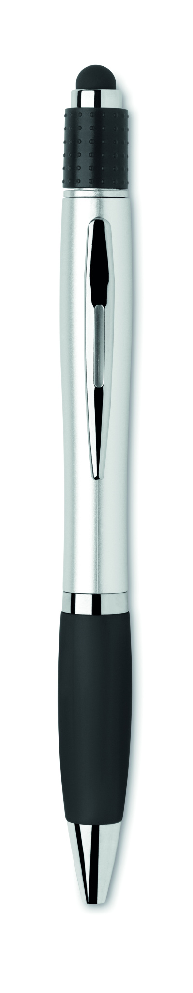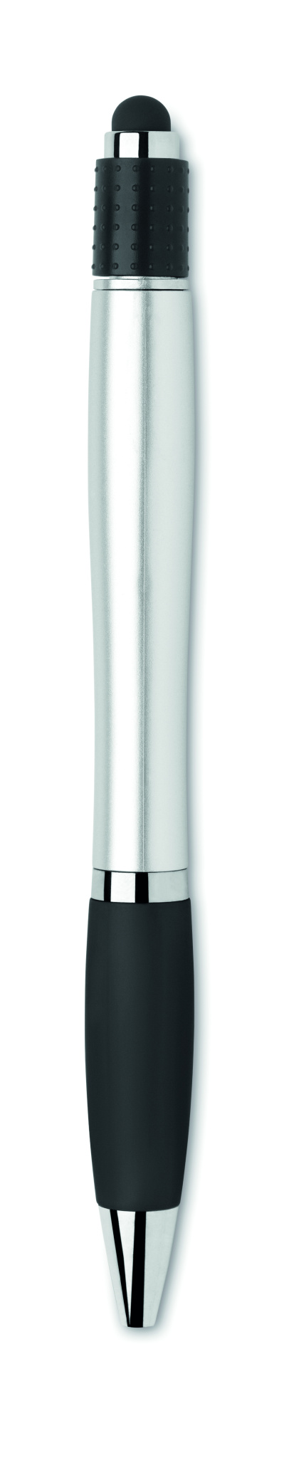 Stylus twist action spinner ball pen in recycled ABS. Blue ink.