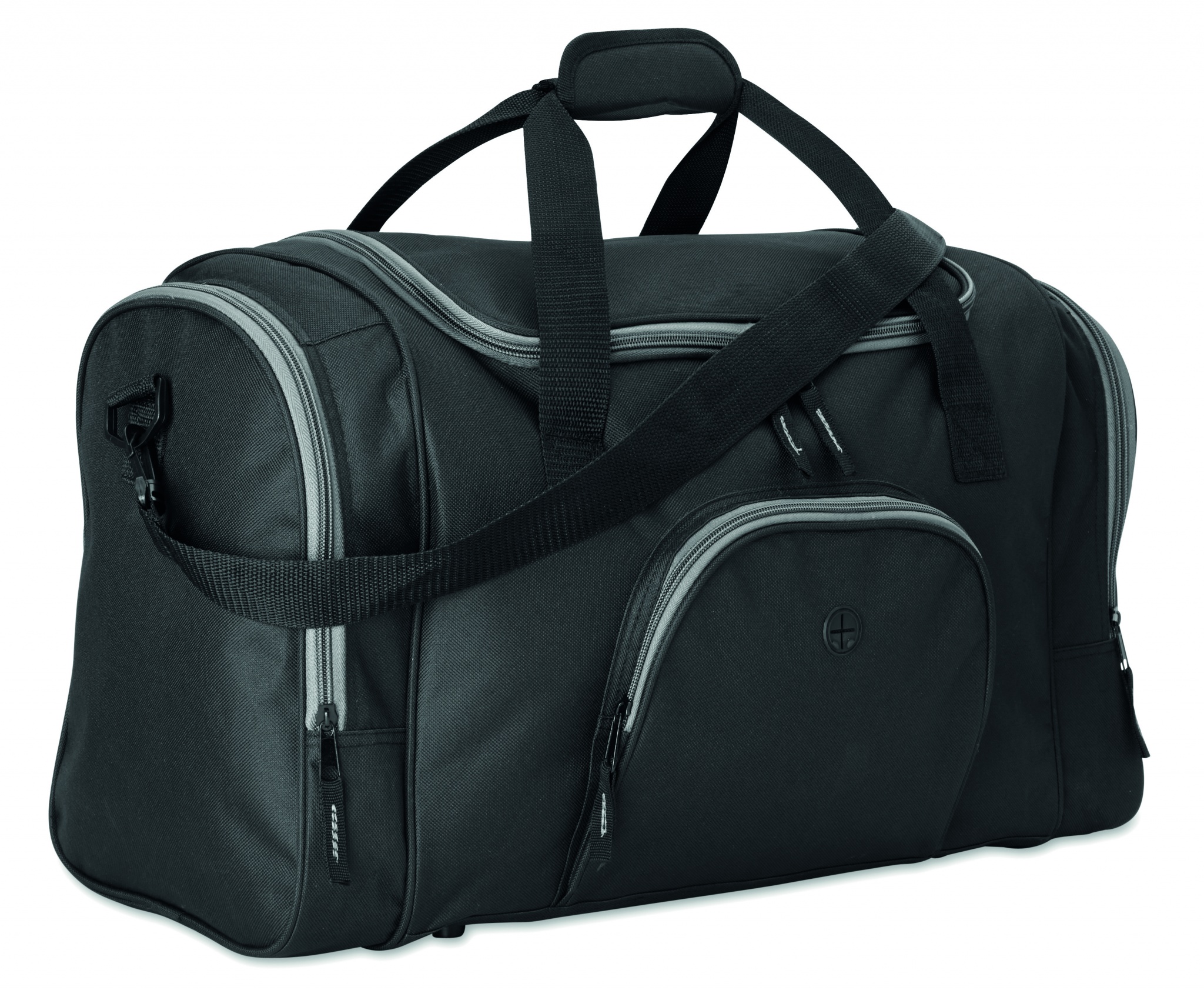 Сумка дорожная/спортивная из полиэстера 600D с 2 боковыми карманами, закрывающимися на молнию, и одним карманом для наушников. Съемный регулируемый наплечный ремень в комплекте.