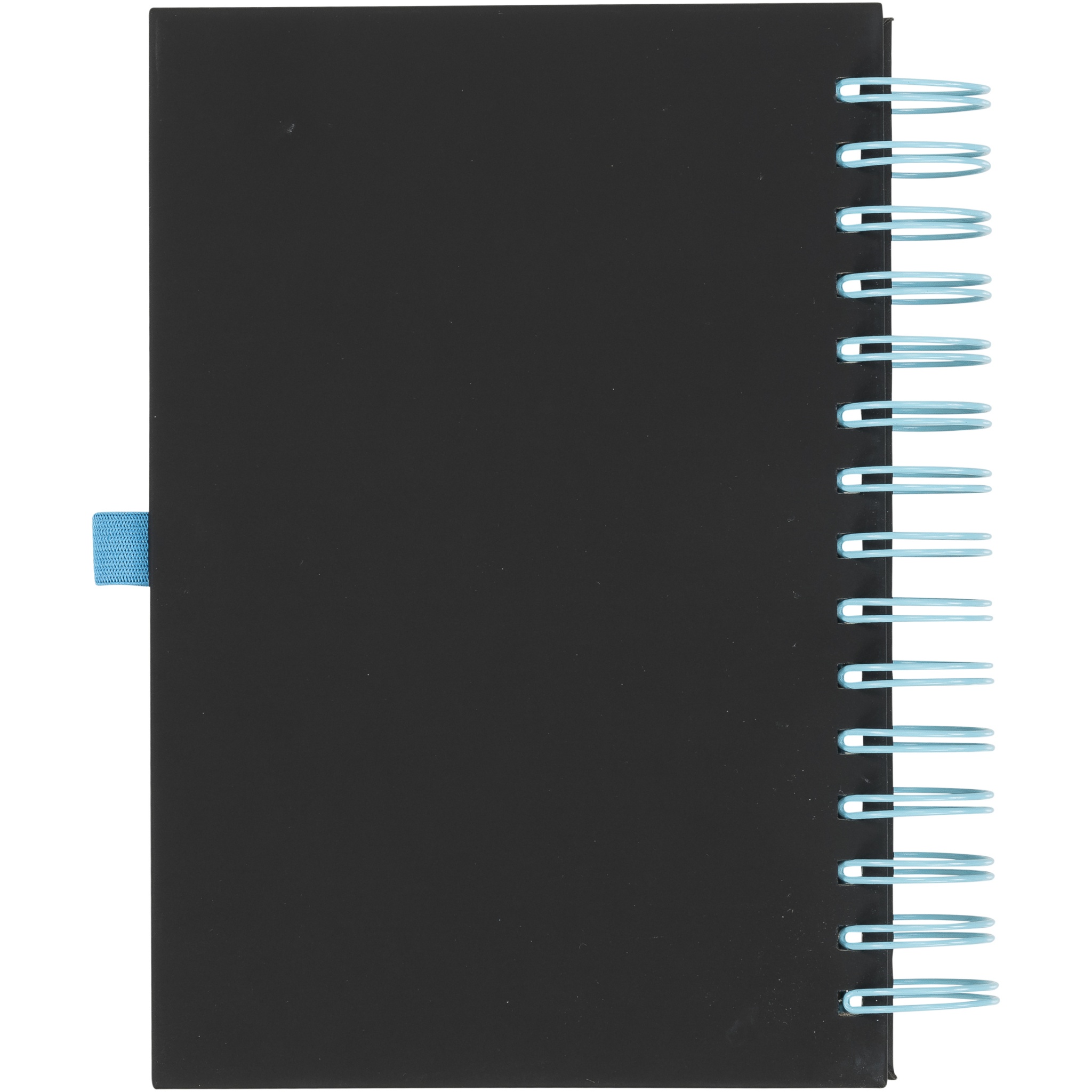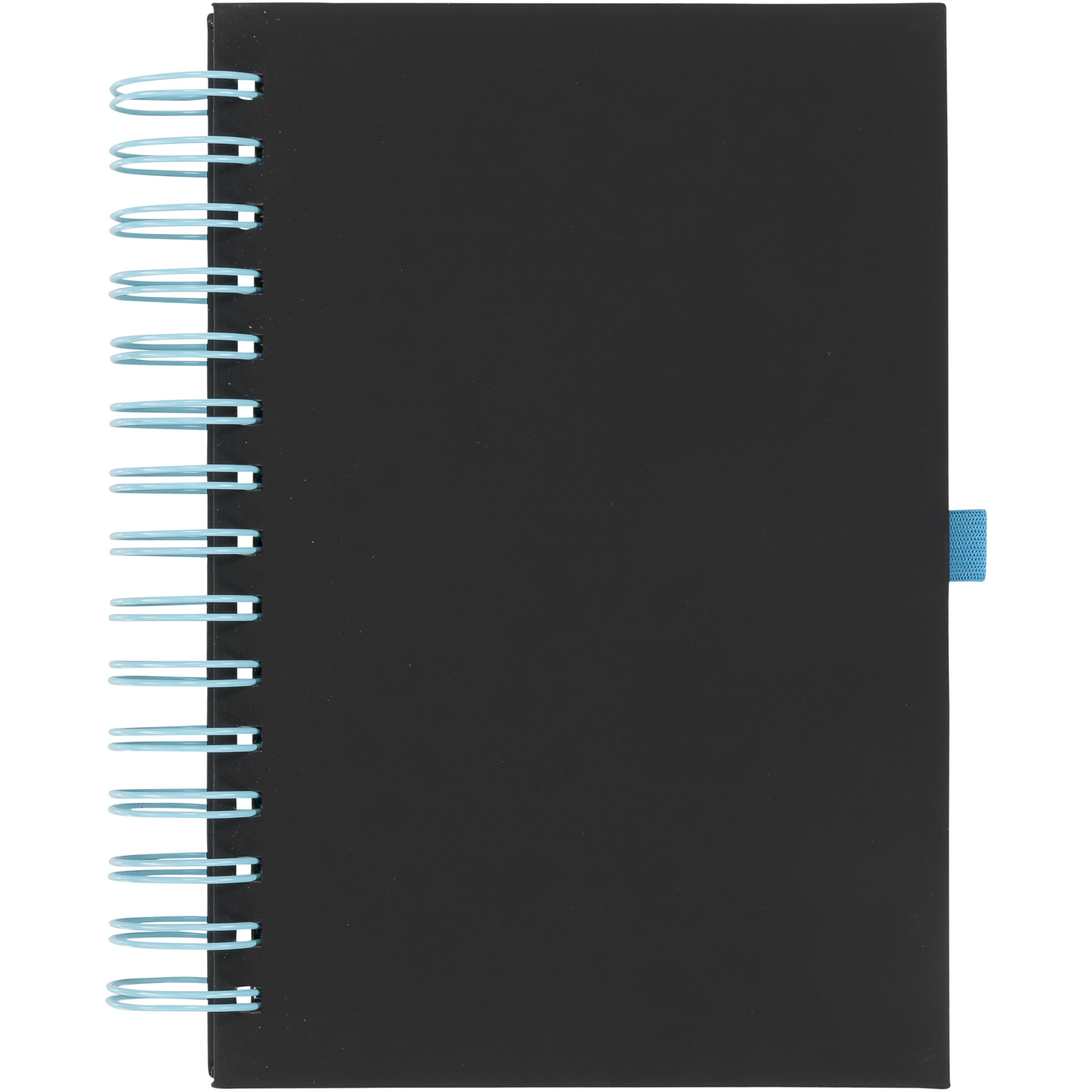 Новинка в нашей популярной коллекции блокнотов. В этом универсальном новом блокноте есть гладкая черная обложка из ПУ, цветная спираль и застежка-держатель для ручки. Содержит 160 листов линованной бумаги (70 г/м²) кремового цвета.