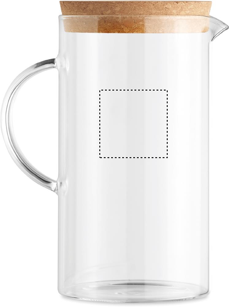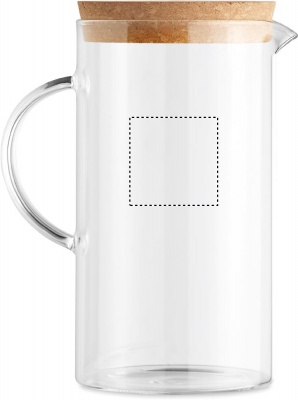 Karaff i borosilikatglas med korklock. Servera färskgjord juice, saft, vatten eller andra drycker i denna glaskanna. Eftersom det är tillverkat av borosilikatglas tål den varm eller kall dryck. Korklocket ger karaffen ett naturligt utseende. Volym: 1L.