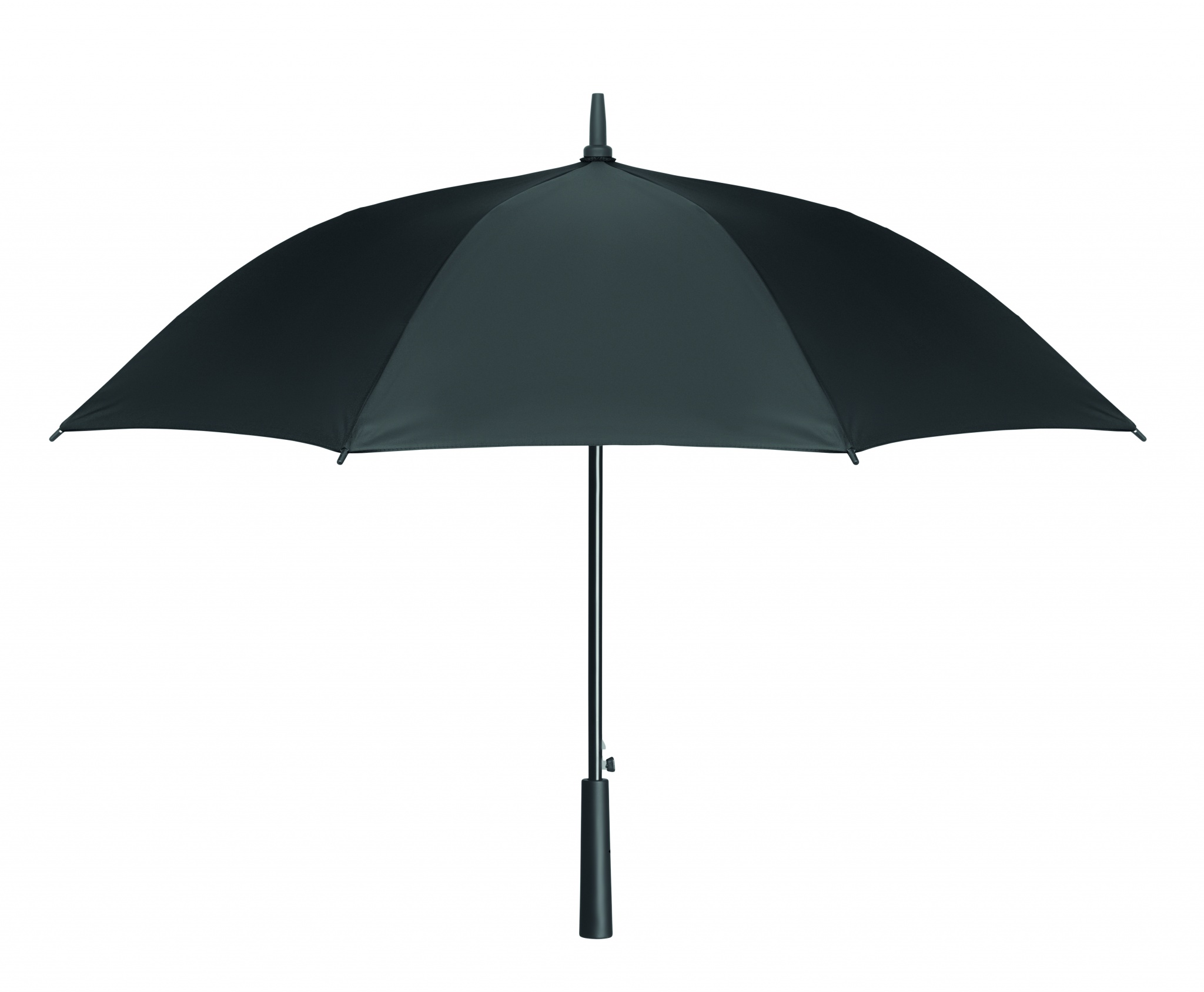 23 tums vindtätt paraply med automatisk öppning i 190T polyester med ram i glasfiber och svartpläterat skaft och plastspetsar. Handtag i ABS med gummifinish. Manuell stängning.