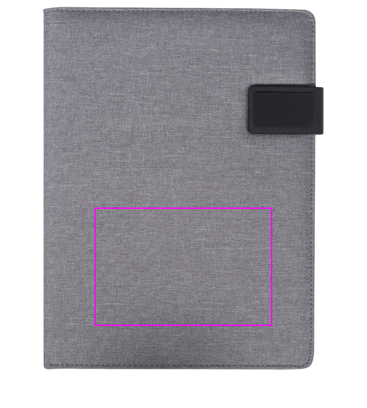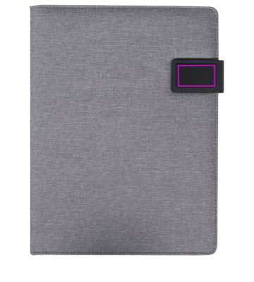 DIN A4-mapp med olika fack och öglor, mobilficka, skrivblock (20 sidor) och magnetisk stängning. Vi kommer att överföra tryck din logotyp på framsidan.