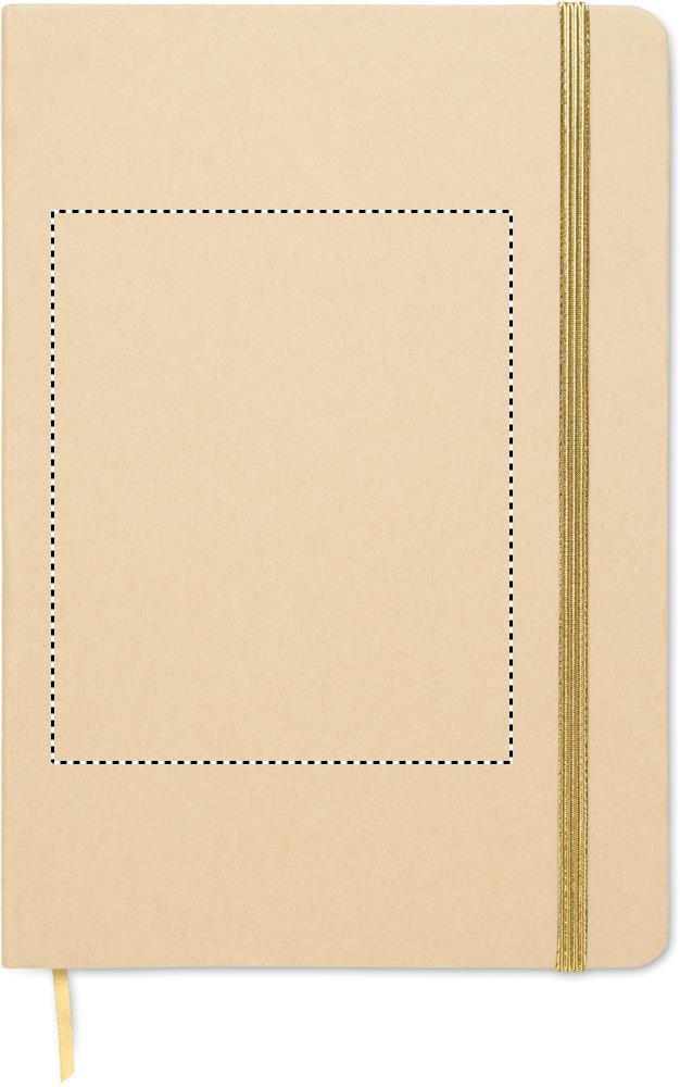 A5 anteckningsbok med omslag av hård återvunnen kartong. Beige omslag. Inbunden med 160 linjerade sidor av återvunnet papper (80 ark). Elastiskt stängnings- och läsband matchar den underliggande färgen. Efter lasergraveringen kommer logon att träda fram i samma färg som bandet.