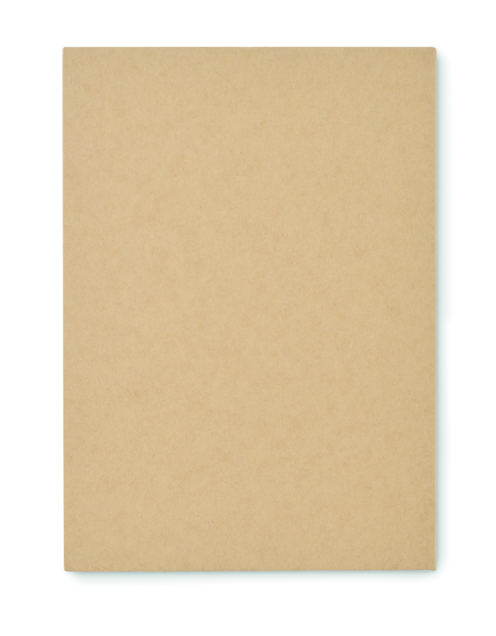 Skriv- & anteckningsset med omslag av återvunnen kartong. 70 linjerade ark av återvunnet material. Anteckningsblock, memolappar och sidmarkörer. Pennor med pappershylsa och ABS-delar, ABS-pennvässare, 2 träpennor, trälinjal 15cm, suddgummi och gradskiva.