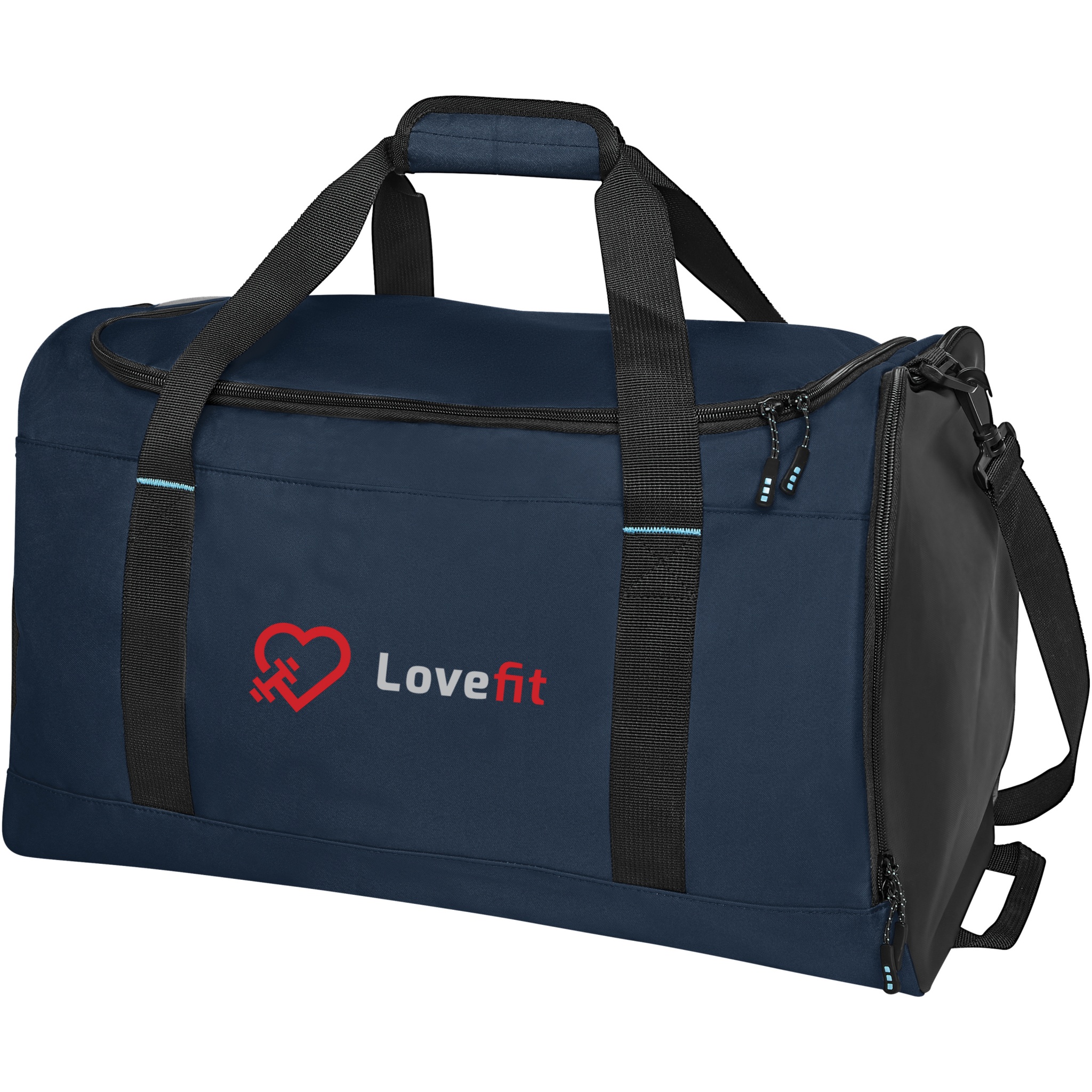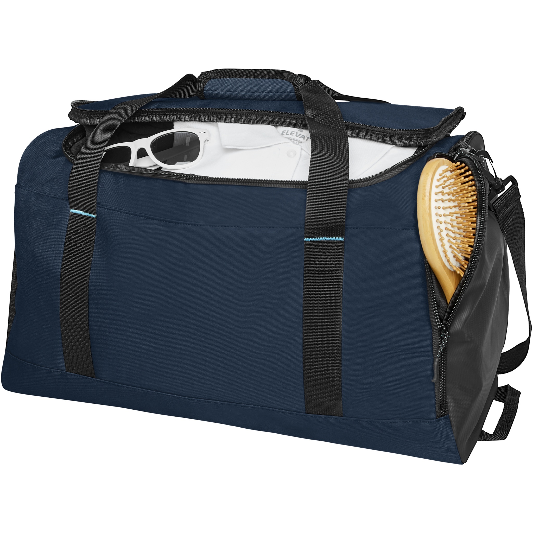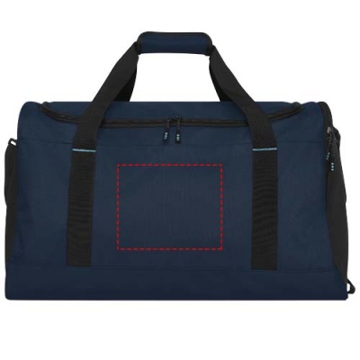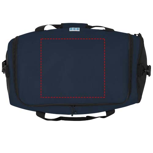 Hållbar GRS-certifierad RPET-duffelväska tillverkad med 55 % återvunnet material. Utrustad med ett stort huvudfack med blixtlås, en förstärkt baspanel, en nätficka på sidan, och en expanderbar våt/torr blixtlåsförsedd ficka. Levereras med en liten innerficka med dragkedja för organisering, avtagbar och vadderad axelrem, grepphandtag med vadderad kardborrestängning och ett extra grepphandtag på den nedre högra sidan.