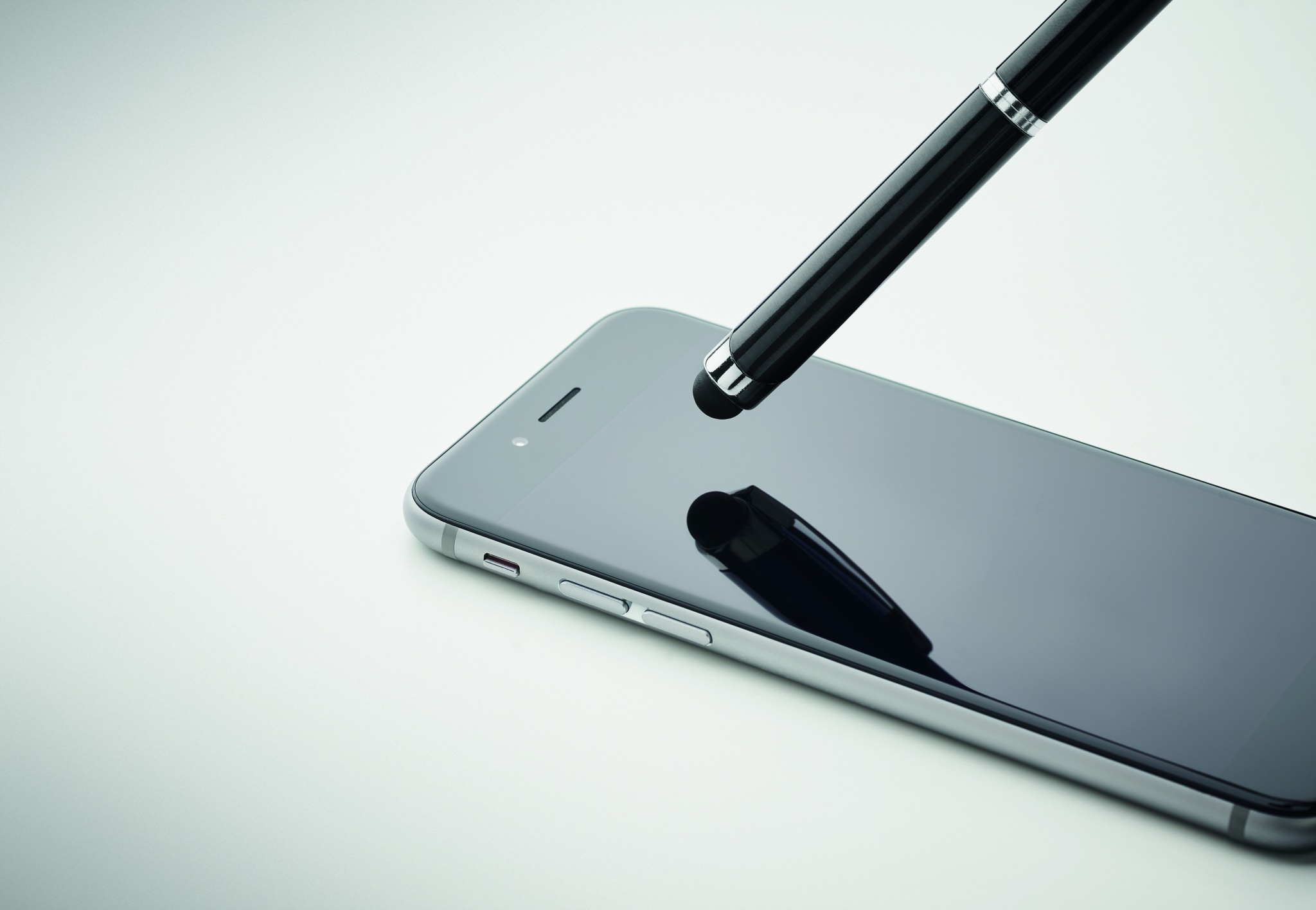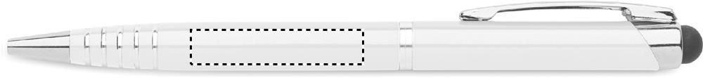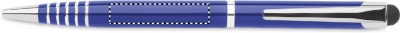 Kulspetspenna i återvunnen aluminium med vridmekanism och stylus. Blått bläck.