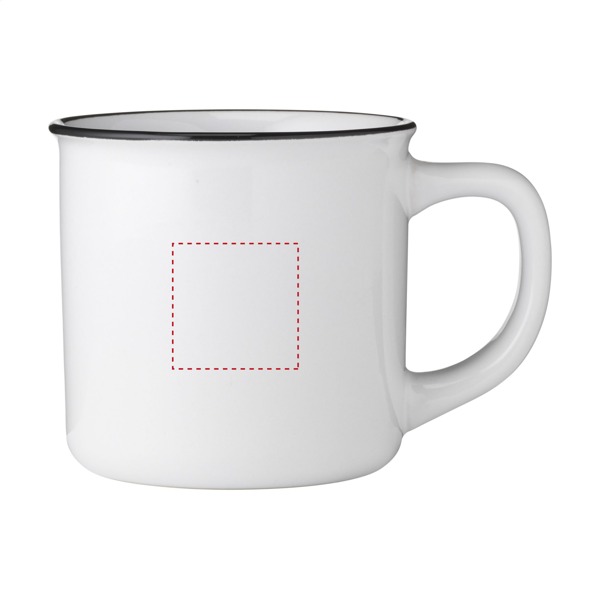 Högkvalitativ keramisk mugg i populär retrostil. Kapacitet 320 ml. Tål diskmaskin. Avtrycket är testat och certifierat i maskindisk. EN 12875-2.