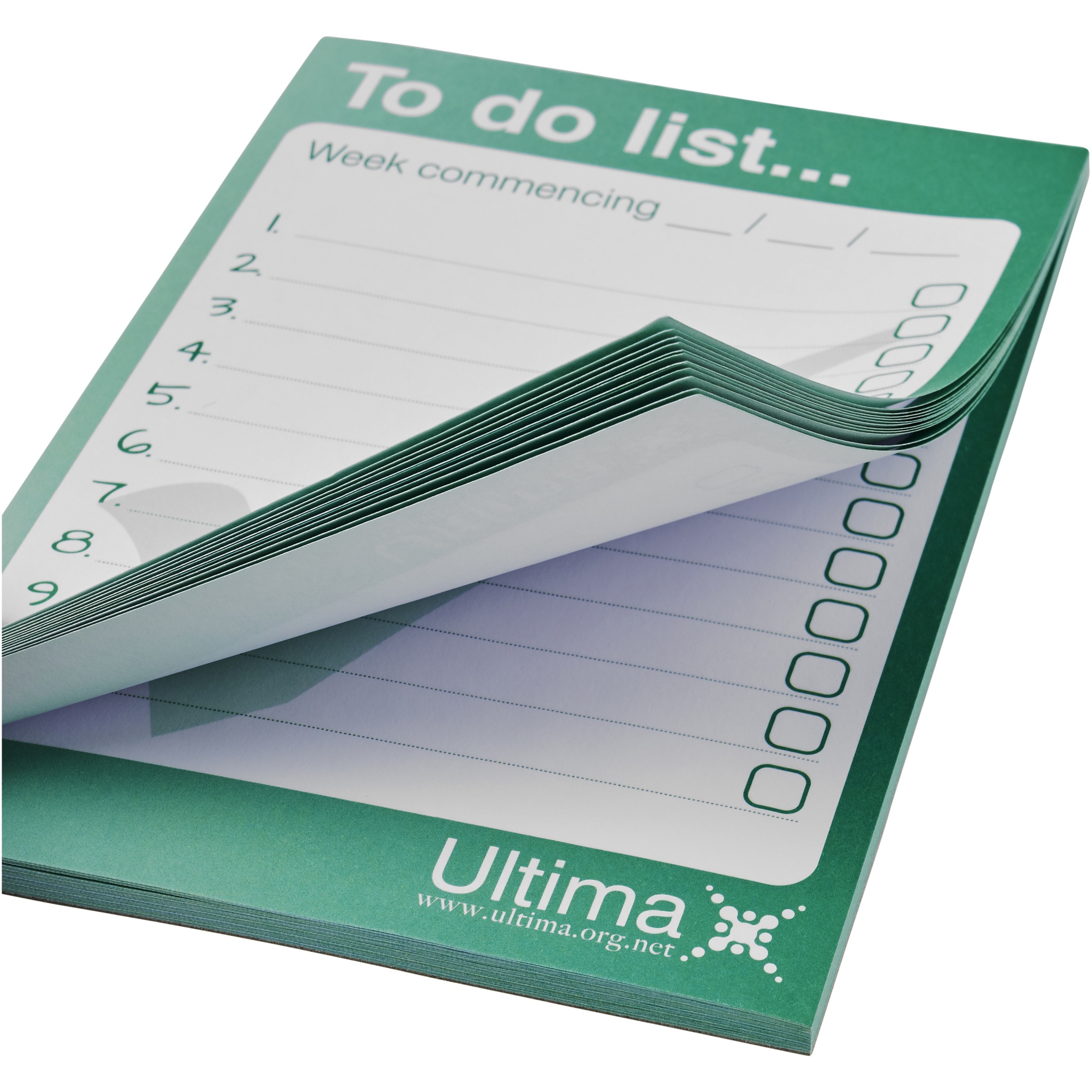 Vit A6 Desk-Mate® anteckningsblock. Standardmodell Innehåller 50 ark 80 g / m2 papper. Fullfärgstryck tillgängligt för varje ark. Tre storlekar tillgängliga: 25/50/100 ark.