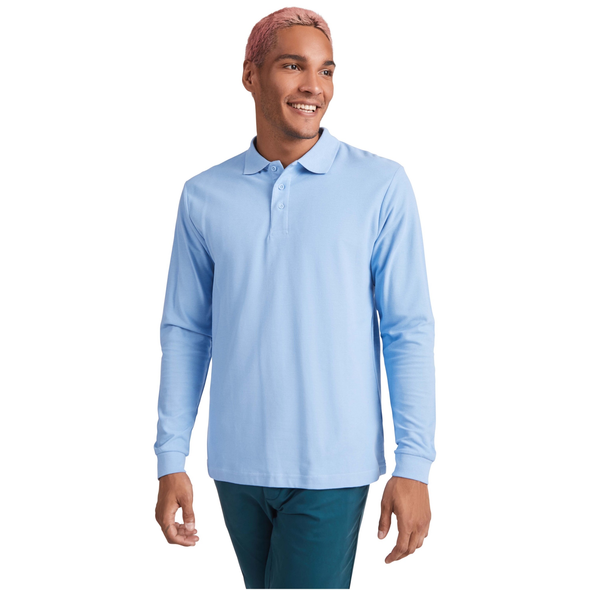 Estrella långärmad pikétröja för herr, Himmelsblå