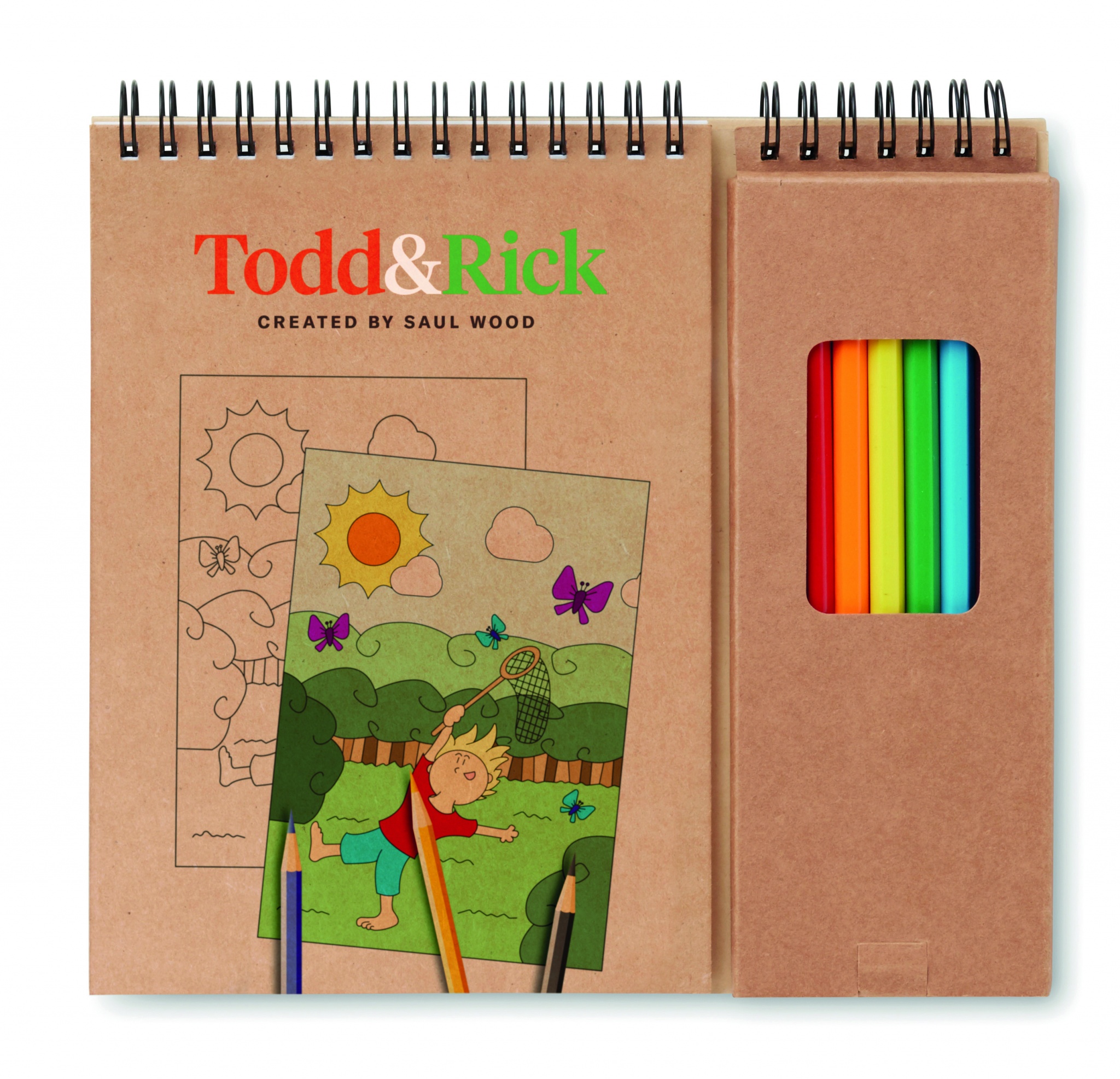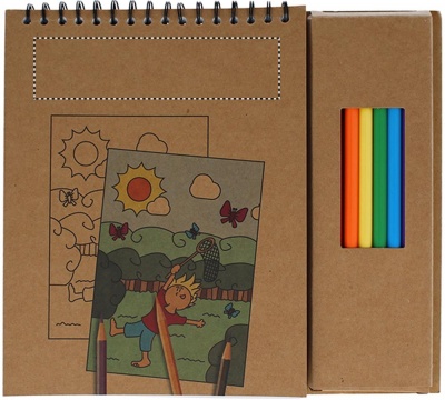 Färgset i med 8 st färgpennor i trä och 24 sidors block, varav 6 st förtryckta färgläggnings sidor och 18 blanka sidor.