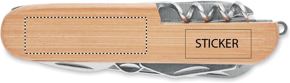 Fickkniv med flera funktioner i rostfritt stål med bambuskåpa. 9 funktioner. Bambu är en naturligt material och det kan finnas små variationer i färg och storlek, vilket kan påverka märkningen.