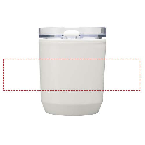 Termos med enkel design som passar de flesta kaffemaskiner och mugghållare i bilar. Dubbelväggig konstruktion med utsida av återvunnen PP-plast och insida av PP-plast. Det skjutbara locket är tillverkat av AS- och PP-plast. Volymkapacitet: 180 ml.