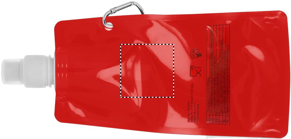 Vattenpåse i BPA fri plast med aluminium karbinhake. Med skruvkork och förslutbar drickpip med lock. Rymmer 480 ml. Läckagefritt.